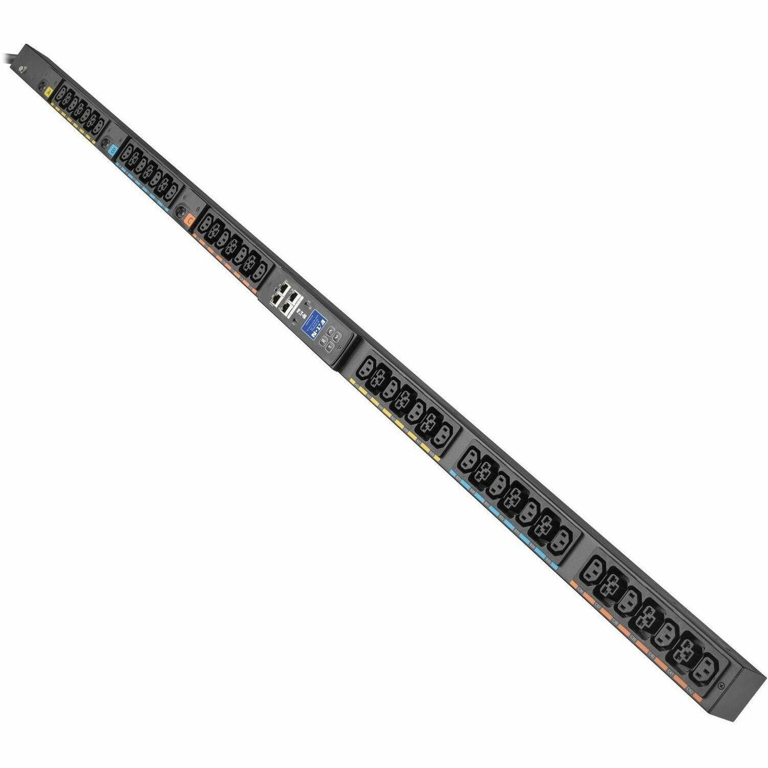 All 42 outlets provide metering, monitoring and switching for granular power data and precision control of power delivery. The outlets are evenly distributed into six color-coded load banks, each two sections with their own circuit breaker, to improve load balancing and organize connections in a crowded rack.