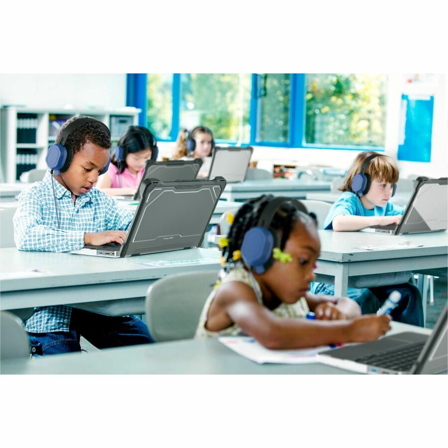 Preferred over earbuds for comfort and sound control, over-the-ear headphones and headsets play an important role in classrooms, school libraries and learning labs. The MAXCases Extreme Headset covers all the bases, with a design that's ideal for the rigors of all-day use. Adjustable ear pieces with padded covers provide comfort for extended listening, while the durable, fixed-position stub mic delivers clear audio quality. Accessibility features like Left-Right earpiece labels and in-line volume control make them easy to use by even the youngest students. Created to last, the rugged design includes a durable, braided cable, a flexible headband and smooth, easy-to-clean surfaces. Drop tested up to 6.6 feet (2 meters), and covered by a two-year warranty. This model features a USB connector. For the 3.5mm jack version, click here.