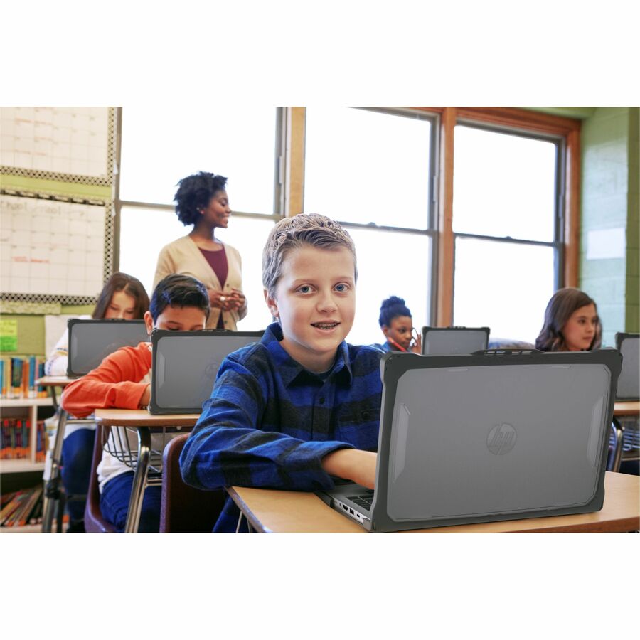Featuring MAXCases' patented slide-on top design, the Extreme Shell-F Slide Case V2 protects Chromebooks with slide-on ease and enhanced screen protection in an updated, lightweight design. Featuring a refined top design, the Extreme Shell-F Slide Case V2 reduces carrying weight, without sacrificing durability or protection, while providing a sleek and easier-to-clean surface. The innovative slide design disperses pressure evenly around the entire perimeter, for a snug fit that eliminates pressure hotspots around the screen. Crafted with dual layers of tough TPU for outstanding impact and drop protection, the ESF2 case combines a cushioning inner layer of TPU with an oil- and dirt-resistant outer layer and is tested to meet MIL-STD 810H-516.6 for five-foot drops. The overhang corners add protection without added bulk, while the clear, rigid top and bottom panels prevent exterior damage and provide visibility for stickers and asset tags. The custom fit ensures easy access to all buttons and ports. For added convenience, the V2 design accommodates a handy carrying strap that fits snuggly against the case (sold separately).