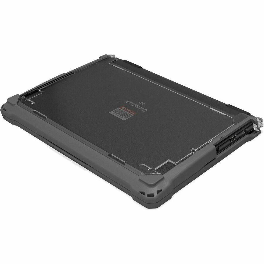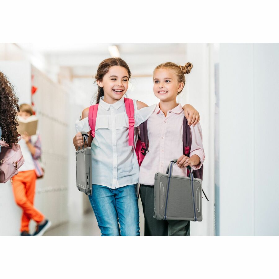Featuring MAXCases' patented slide-on top design, the Extreme Shell-F Slide Case V3 protects Chromebooks with slide-on ease and enhanced screen protection in an updated, lighter-weight design. The slimmer top design further reduces carrying weight, without sacrificing durability or protection, while providing a sleek and easy-to-clean surface. The updated corners provide a slimmer profile designed to enhance protection under a wide range of impact circumstances. The innovative slide design disperses pressure evenly around the entire top perimeter, for a snug fit that eliminates pressure hotspots around the screen. Crafted with dual layers of tough TPU for outstanding impact and drop protection, the ESF3 case combines a cushioning inner layer with an oil- and dirt-resistant outer layer and is tested to meet MIL-STD 810G-516.6 for four-foot drops. The clear, rigid top and bottom panels prevent exterior damage and provide visibility for stickers and asset tags. The custom fit ensures easy access to all buttons and ports. For added convenience, the V3 design accommodates a handy carrying strap that fits snuggly against the case (sold separately).