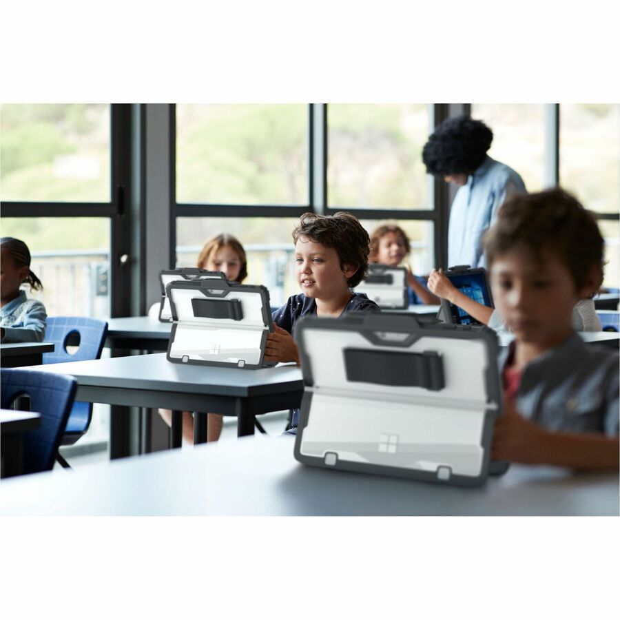 Safeguard Microsoft Surface Pro 9 tablets from damage due to drops, bumps and scratches with the custom-fit Extreme Shell case. Rugged, shock-absorbing bumpers surround an impact-resistant clear polycarbonate cover; reinforced corners increase shock-absorption for this vulnerable area, for added impact protection. The precise fit enables full use of the kickstand and all functional features.