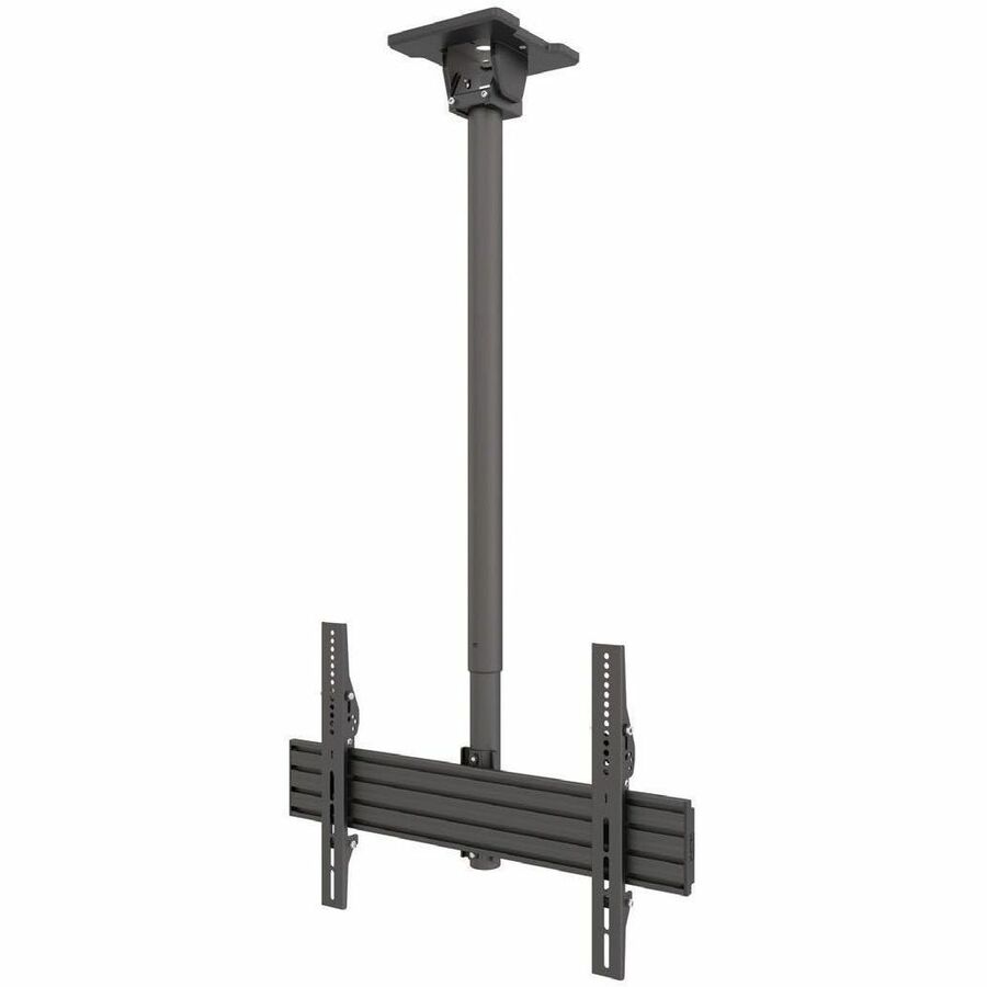 - The full motion ceiling mount's detachable mounting plate can be easily installed to any wood stud or concrete ceiling. Simply slide the extension pole into place and secure it to complete the installation.