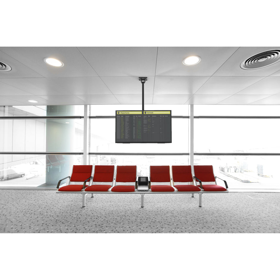 The CM600 TV Ceiling Mount is engineered to ensure a quick installation on both flat and sloped ceilings. Capable of swinging up to 90°, its telescoping extension pole provides 23" of height adjustment and 360° of rotation, allowing you to position your TV exactly where you want it. Along with adjustable leveling screws, its mounting brackets feature four discrete tilt options, giving you the ability to angle your TV independent of the pole. Tilt it up to 15° forward to improve line-of-sight, or 6° backward to compensate for potential lean. Unobstructed cable management is also provided through the entire length of the mount, keeping your cables safe and out of sight.