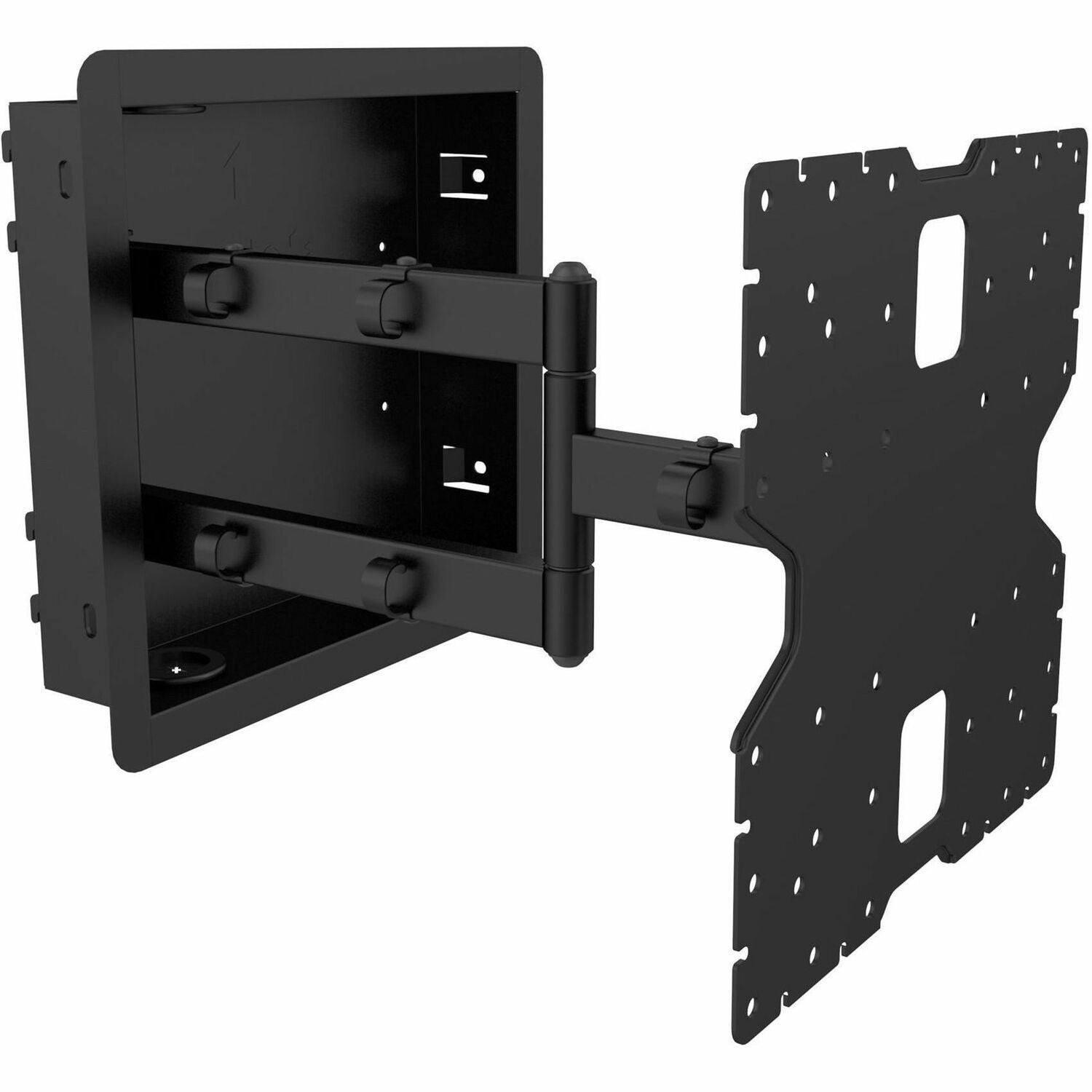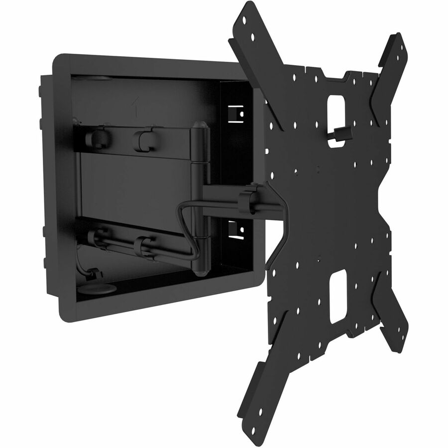 R400 is a mount made for Pro's featuring a true no gap installation that allows your TV to sit perfectly flush against your wall for the ultimate low-profile look. Thin TVs like OLED appear to float like a picture frame with no visible hardware. With a recessed box that sits in-between studs, you can store streaming boxes and other small electronic accessories out of sight. Metal knockouts allow you to easily run a power outlet into the box, while rubber grommets handle all other cabling for a completely in-wall, wire-free experience. Durable metal cable management clips on the articulating arms take care of messy cables when the TV is pulled out to its full 18" of extension.