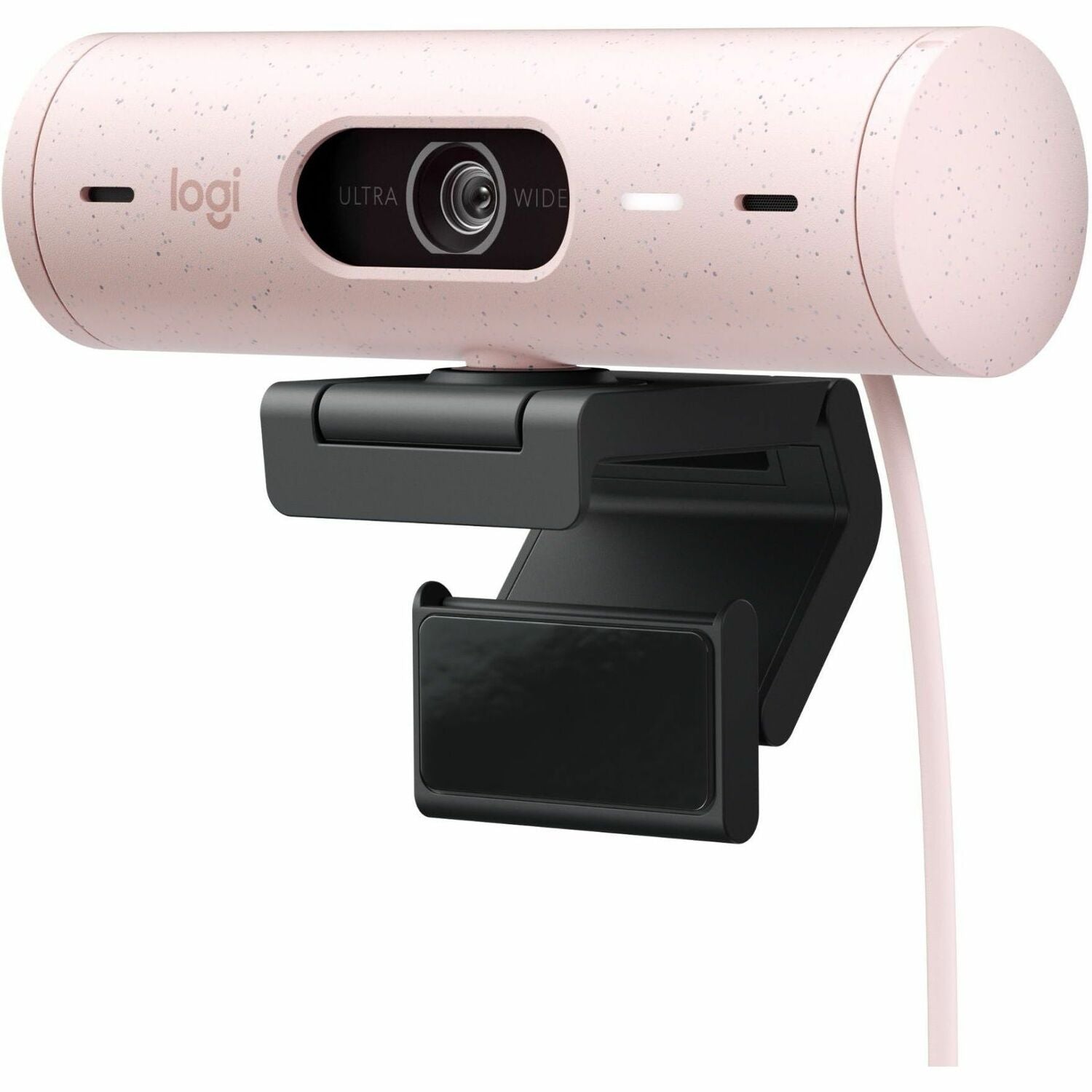 Logitech Brio 500 Full HD webcam, auto framing, noise-reducing mics, privacy shutter, streaming & video calling, Rose