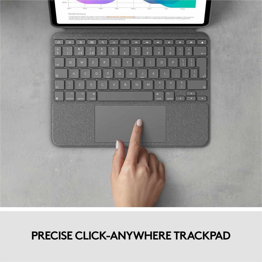 Meet the keyboard case that enables whole new levels of versatility. Type, view, sketch, and read with iPad Pro - all while keeping the front, back, and corners snug and protected. With the new click-anywhere trackpad, together with Logitech's signature laptop-like keyboard, you can work and create effortlessly. Possibilities? Endless.