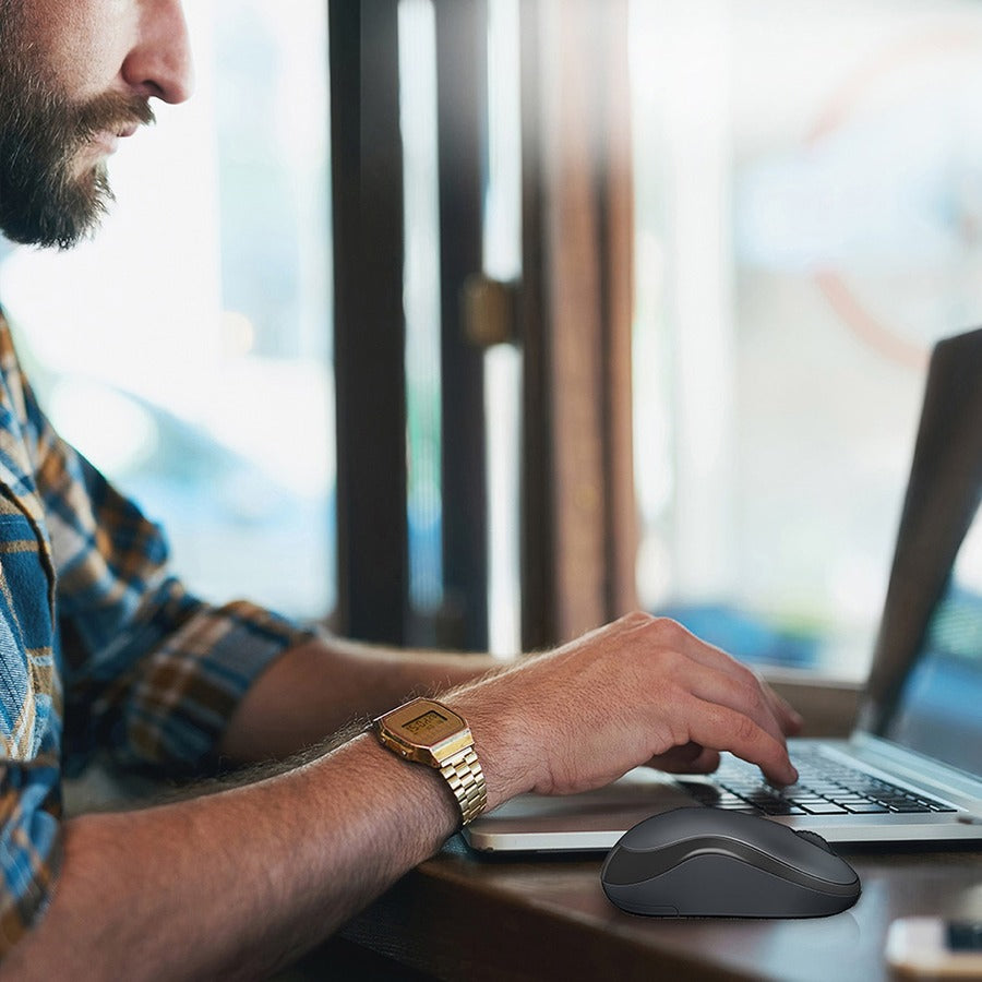 With the same click feel and 90 percent noise reduction compared to classic mice, M220 SILENT offers a quiet user experience. It has a long-lasting 18-month battery life with auto-sleep and a powerful 33-ft wireless range. Simply plug the tiny USB receiver and use with Windows, Mac, Chrome OS or Linux. M220 features Logitech Advanced