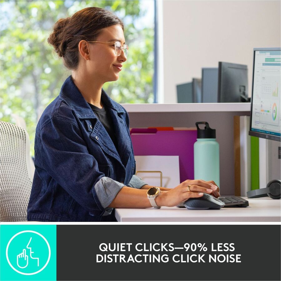 - Mouse - Quiet Click technology makes open work areas better for everyone, reducing click noise by 90% for less distraction and better focus