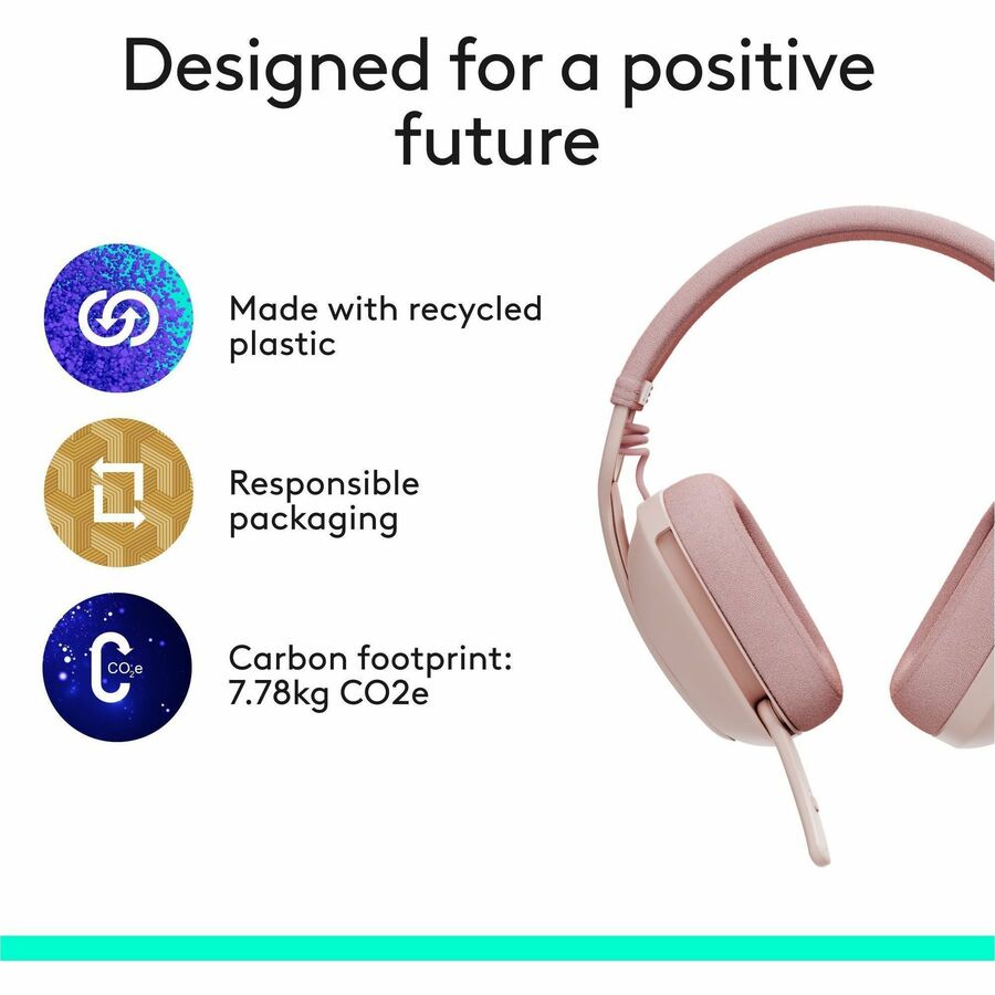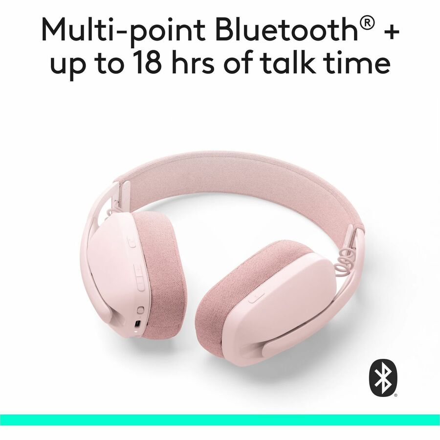 Logitech Zone Vibe 100 Wireless Over Ear Headphones, Noise Canceling Microphone, Advanced Multipoint Bluetooth Headset, Rose