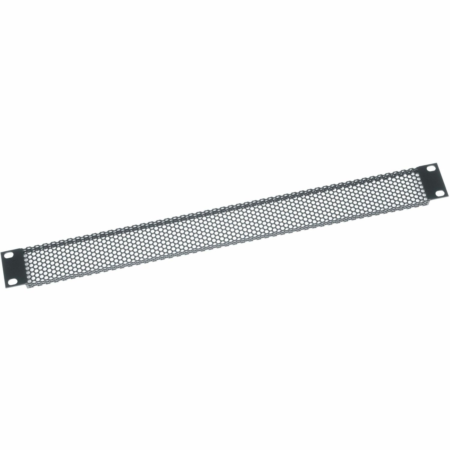 The Middle Atlantic VT1 1 RU Rack Vent Blank Panel is a 1 rack unit vent panel with an open area of the perforation pattern being 64%. The blank panel is constructed of 16-gauge aluminum and has a black powder-coat finish.