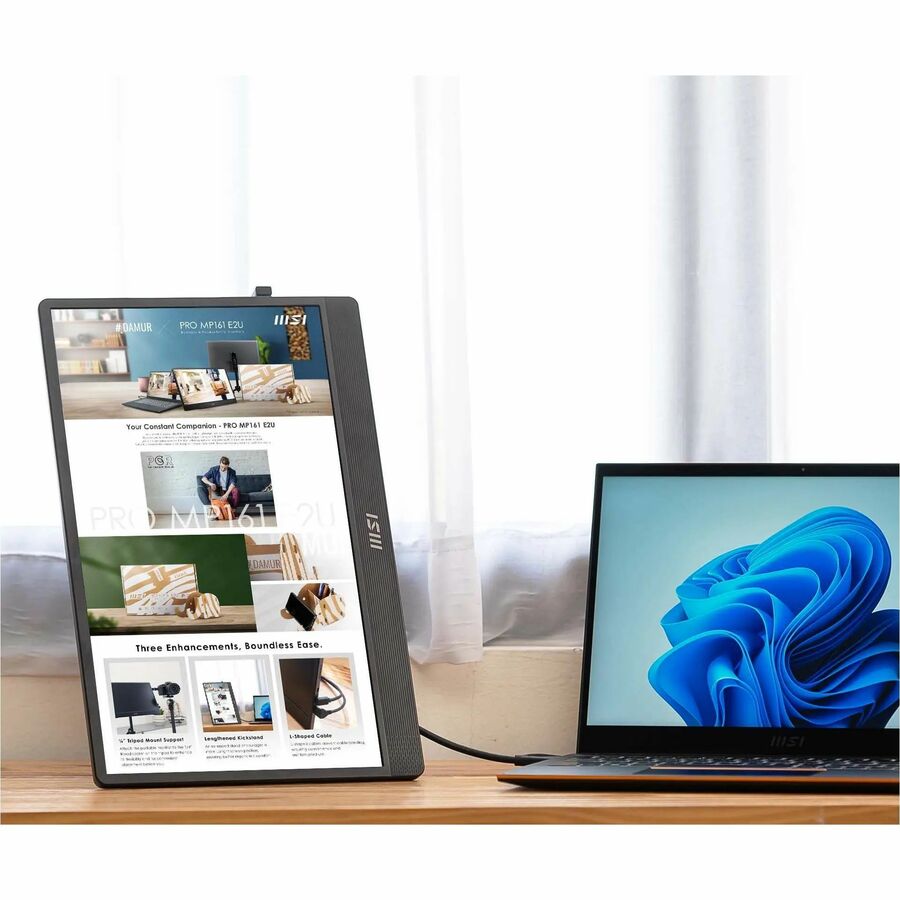MSI PRO MP161 E2U 16" Class Full HD LED Monitor - 16:9 - Black, Metal Silver - 15.6" Viewable - In-plane Switching (IPS) Technology - LED Backlight - 1920 x 1080 - 16.7 Million Colors - 250 Nit - 4 ms - Speakers - HDMI