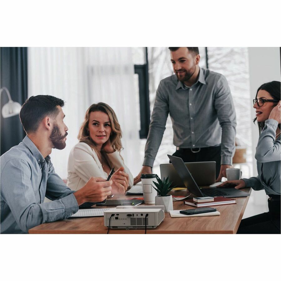 Geared for conference rooms, boardrooms, and other corporate spaces, the ZW410UST features an ultra short throw lens meaning it can project a 100" image from less than two feet away, avoiding shadows being cast across the screen from the presenter(s). For ultimate convenience it comes with an RS232 connection for monitoring and controlling and a built-in speaker.