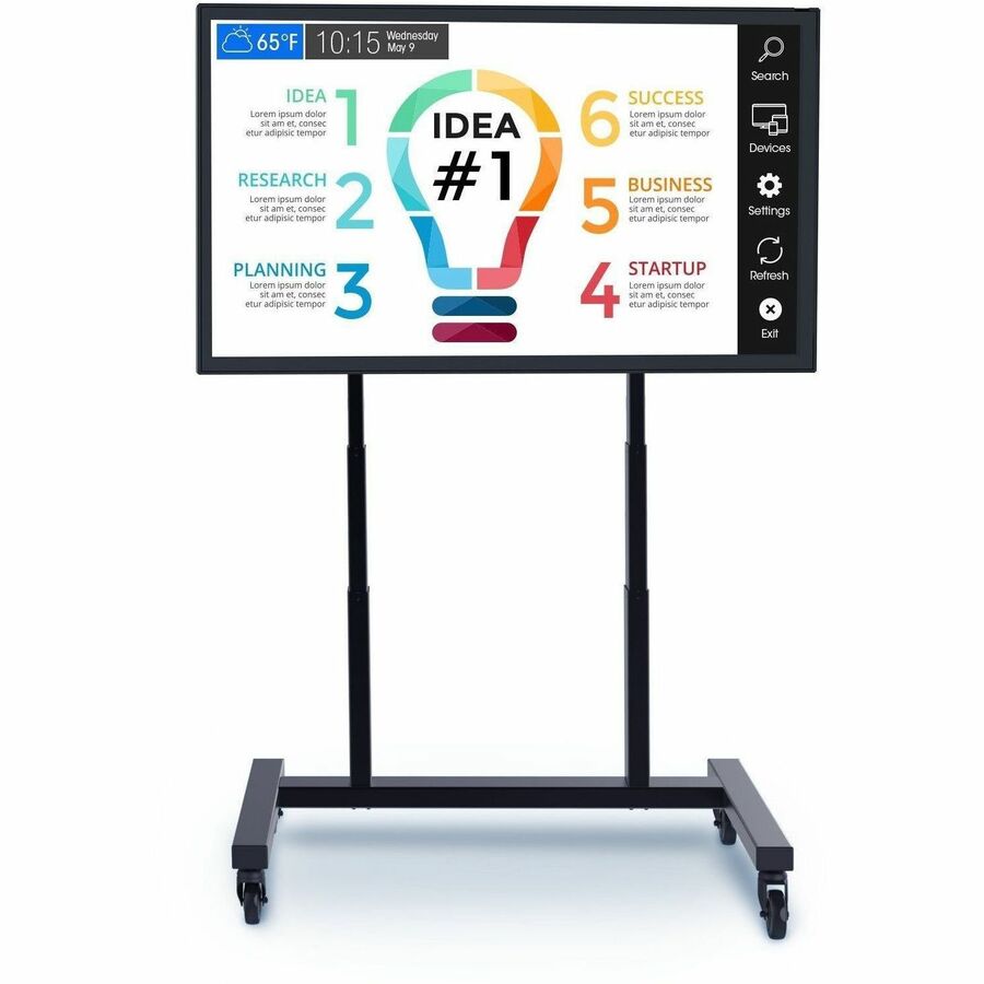 The SmartMount® Motorized Height Adjustable Cart was designed to safely mount, move, and store an interactive display. UL recognized actuators allow you to raise or lower a display, up to 25.6"(650mm), with the touch of a button. For easy setup and storage, the rear shelf provides room for a mini PC and power strip, while the power cord can be neatly bundled and stored just below. The cart's large wall plate and locking casters provide a stable foundation for touch applications, and allow you to easily maneuver the cart from room to room. The durable Black powder coat finish provides a nice aesthetic to complement this highly functional solution that is ideal for any touchscreen application.