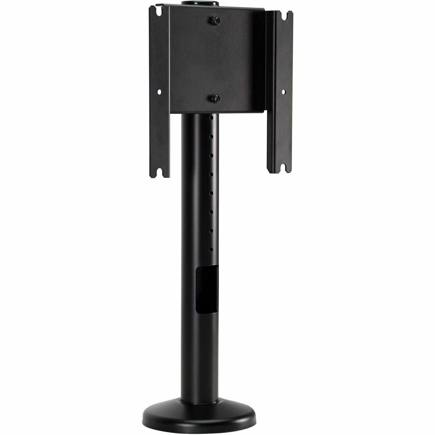 The HP447 series flat-panel Tabletop TV Swivel Mount offers a secure, functional and sleek tabletop surface mount for hospitality applications. Designed to seamlessly connect to a variety of flat panel screen models while its deeper adaptor plate allows for easy access to cable input connections. The built-in adaptor plate is VESA® 200 x 100 and 200 x 200mm compliant and comes with security screws to deter tampering and theft. The mount provides more than just aesthetics and theft deterrence with its swivel range from 0� to 360� it delivers virtually any viewing angle within its diameter. Completing the package is the mounts' decorative base and internal cable management that give it a clean, clutter-free appearance.