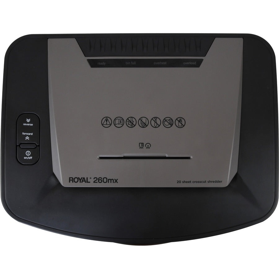 Royal 260MX Paper Shredder - Non-continuous Shredder - Cross Cut - 20 Per Pass - for shredding Paper, CD, DVD, Credit Card, Staples - 0.156" x 1.125" Shred Size - 8.75" Throat - 1 Hour Run Time - 40 Minute Cool Down Time - 8.50 gal Wastebin Capacity - 745.70 W