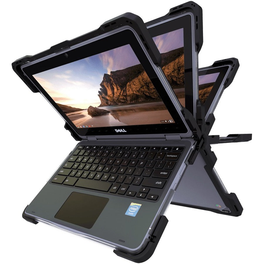 Designed for Dynamic School Environments. The UZBLRugged Hard Shell Case for Dell Chromebook 11 3110 / 3100 / 5190 2-in-1 offers maximum drop protection by utilizing reinforced TPU edges that absorb drops and falls and a clear polycarbonate wraparound shell design to protect from scratches that also allows for convenient asset or barcode scanning. All ports have precise cutouts, and the devices 2-in-1 flip feature is fully functional with our case installed.