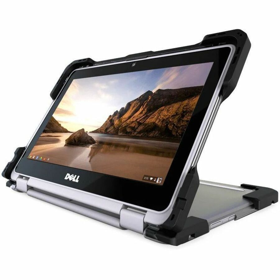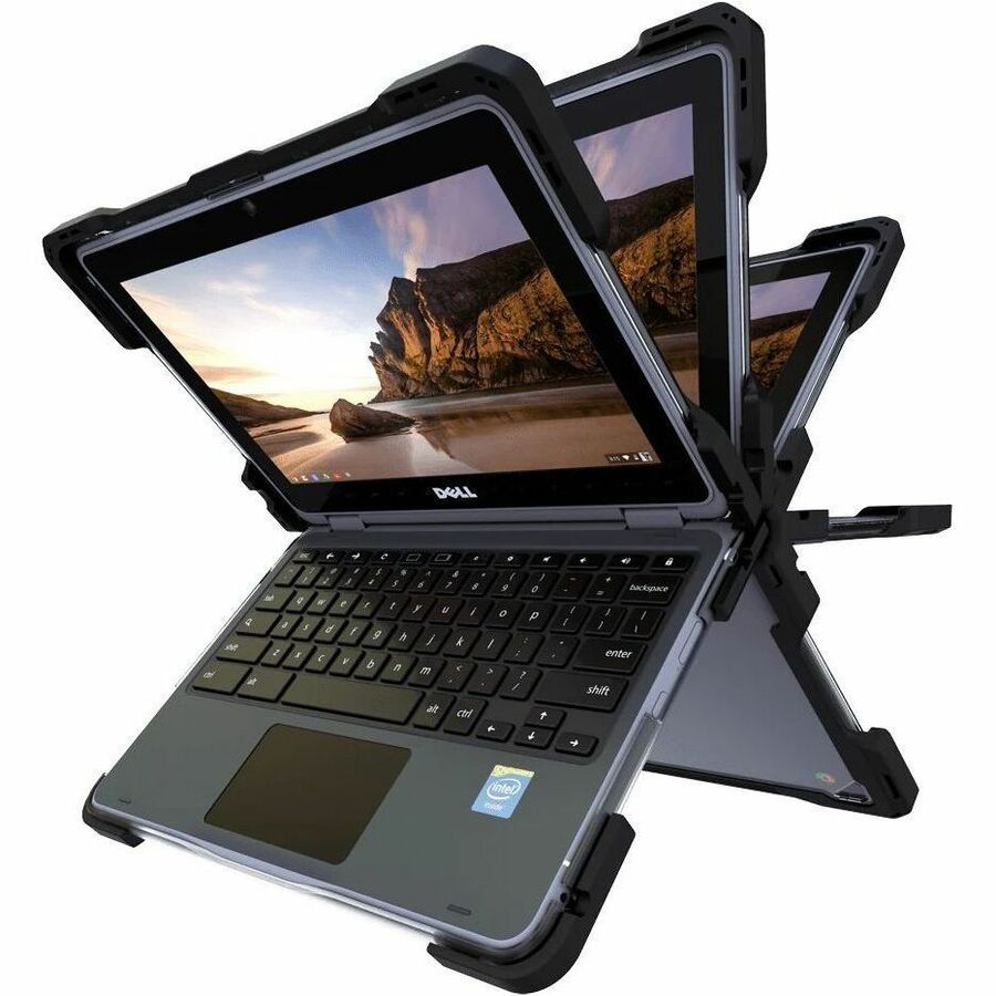 Designed for Dynamic School Environments. The UZBL Rugged Hard Shell Case for Dell Chromebook 11 3189 / 3190 2in1 offers maximum drop protection by utilizing reinforced TPU edges that absorb drops and falls and a clear polycarbonate snap-on shell design to protect from scratches that also allows for convenient asset or barcode scanning. All ports have precise cutouts, and the devices 2-in-1 flip feature is fully functional with our case installed.