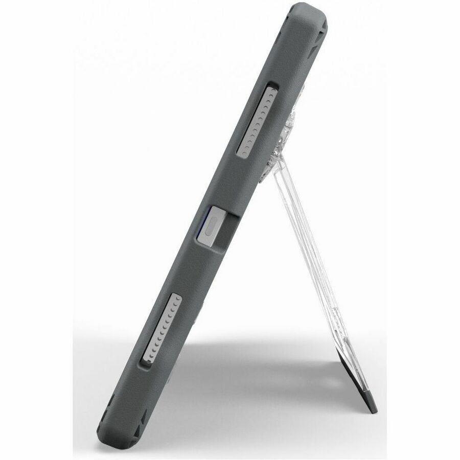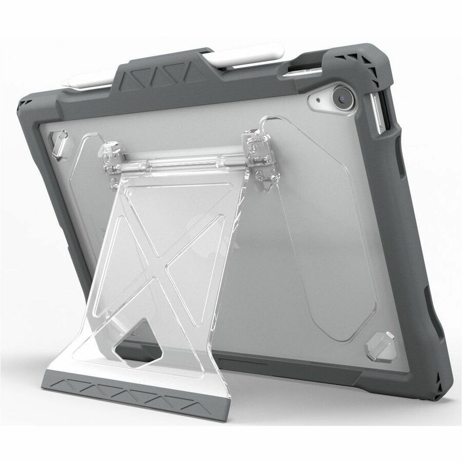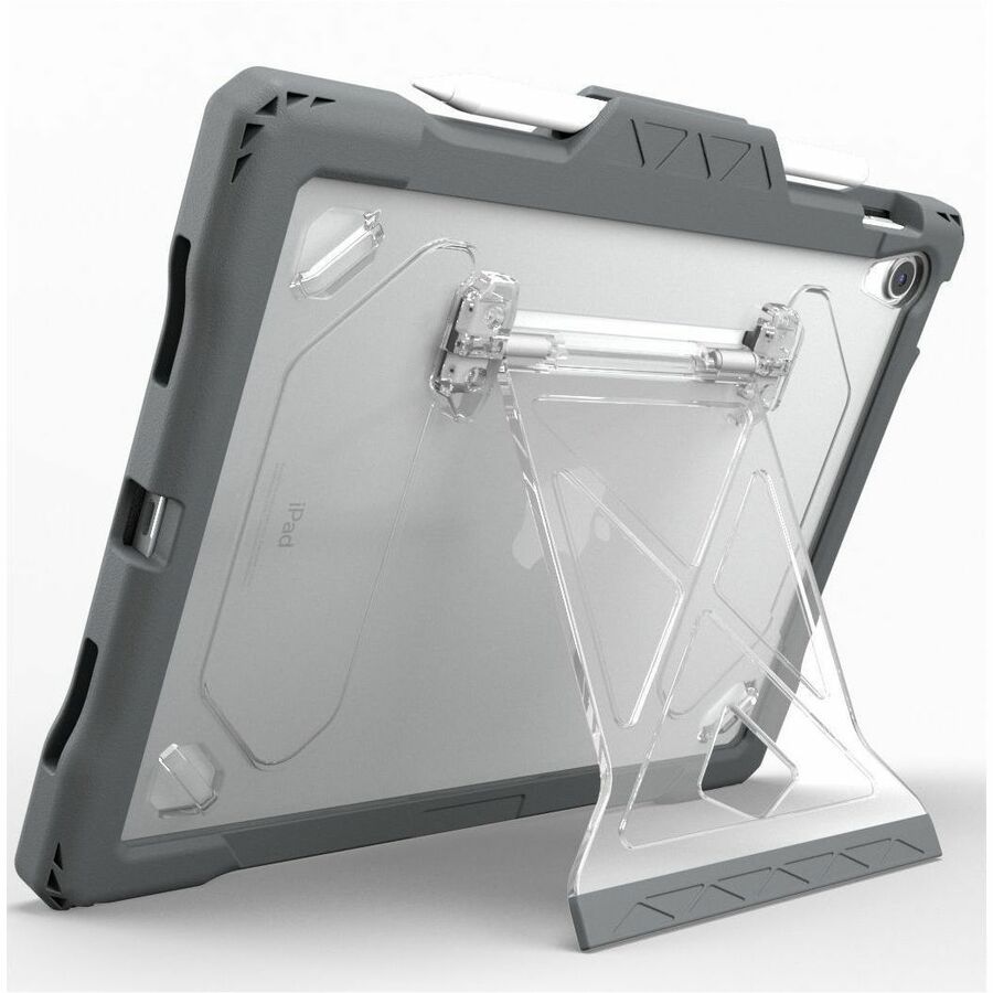 Featuring the repositionable FlexStand for unlimited viewing angles, the Shield Extreme-X2 case provides a perfect fit and outstanding protection for the iPad 10 (2024). The updated design features a completely clear back perfect for viewing asset tags and unique identifiers along with a rugged TPU exterior bumper for unrivalled shock dissipation and protection from drops and impact damage. This durable outer layer additionally resists grease, abrasion, and tears. The removable screen protector enables easy replacement and reinsertion as needed. The patent-pending FlexStand kickstand is virtually break-proof and provides unlimited, stable positioning options thanks to the easy-sliding friction hinge. The custom-fit design delivers easy access to all ports and buttons, ensuring seamless device functionality. Durable, updated corner anchors make it easy to add an (optional) hand strap, shoulder strap or any clip-on accessory.
