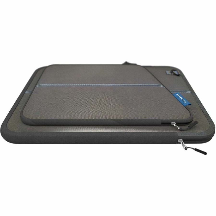 With a snug, padded fit, the Slim Sleeve 3 delivers multi-purpose protection. Safeguard devices while carrying, or slide into backpacks for added protection among books and binders. Vertical zipper access lets students grab devices quickly when the bell rings. Rigid front/back panels safeguard against compression. Enhanced foam perimeter delivers added protection from shock and drops. The roomy outside pocket conveniently houses charging cords and other daily necessities. The durable exterior repels water and resists tears, while the blue accents add visual flair - for functional good looks students feel good about carrying. Universal shoulder strap available to add hands-free carry options.