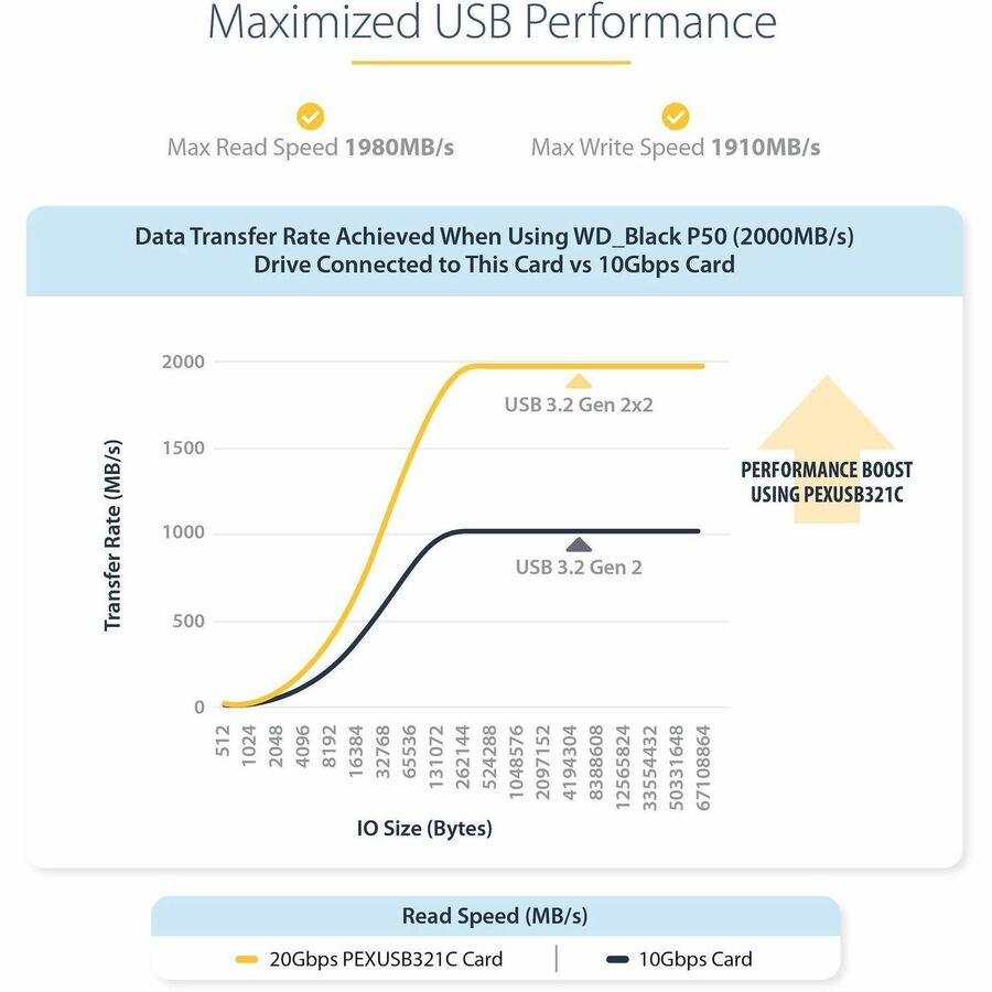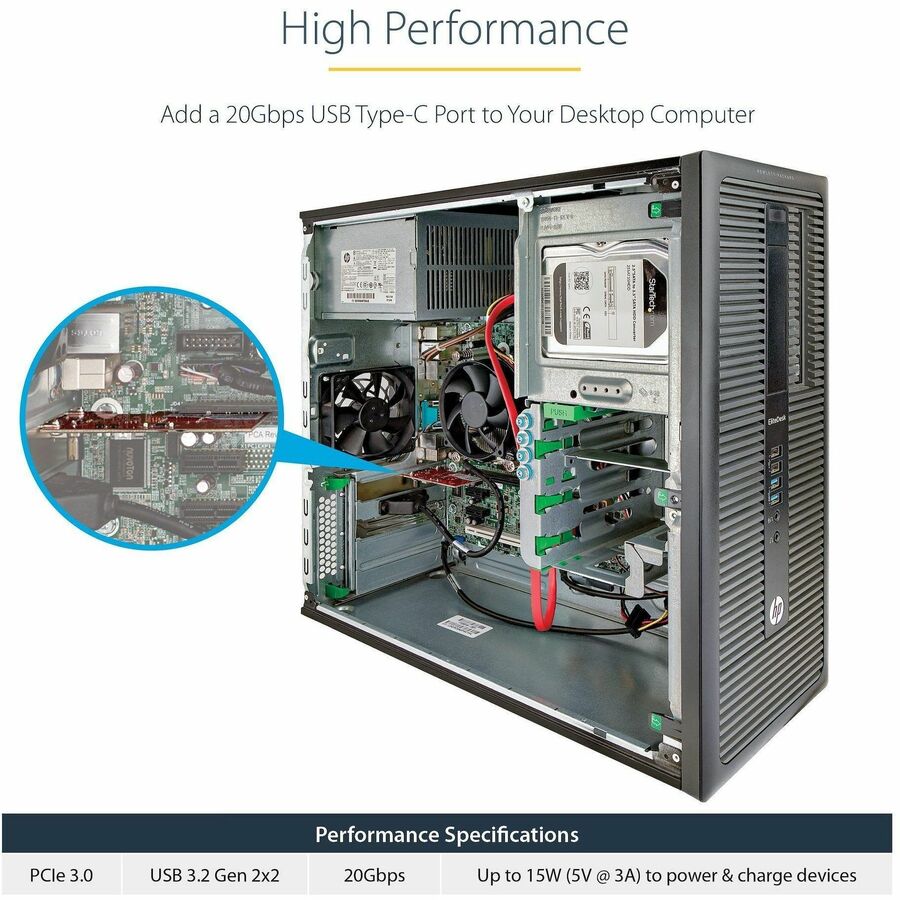 StarTech.com 1-Port USB 3.2 Gen 2x2 PCIe Card, USB-C 20Gbps PCI Express 3.0 x4 Controller, USB Type-C, Data Only, Windows/macOS/Linux, TAA