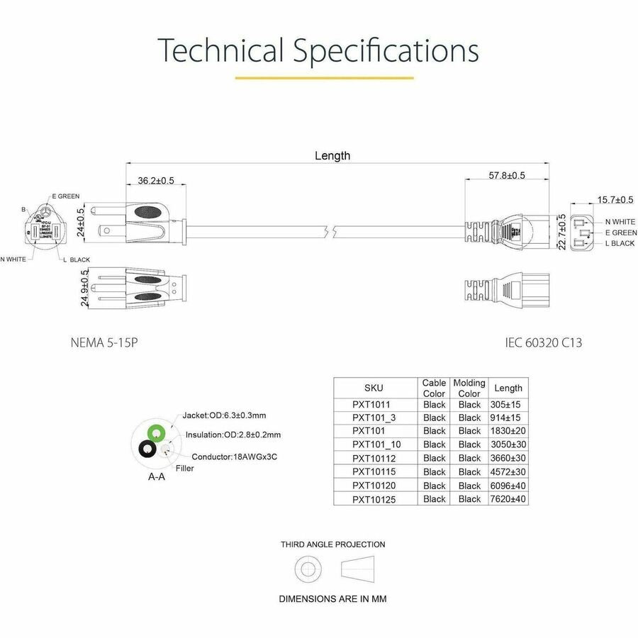 - NEMA 5-15P first end connector type offers dependable connectivity for maximum usability
