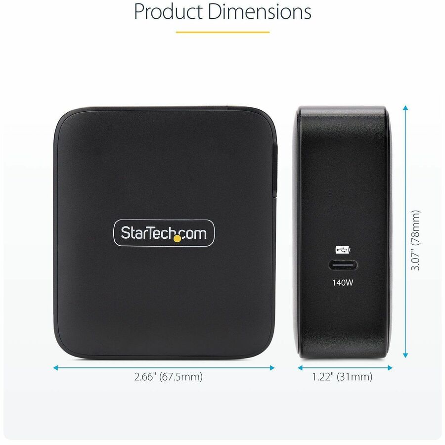 StarTech.com 140W USB-C Wall Charger, USB-IF Certified, PD 3.1 Portable GaN Charging Power Adapter, 6ft/1.8m USB-C to USB-C Cable