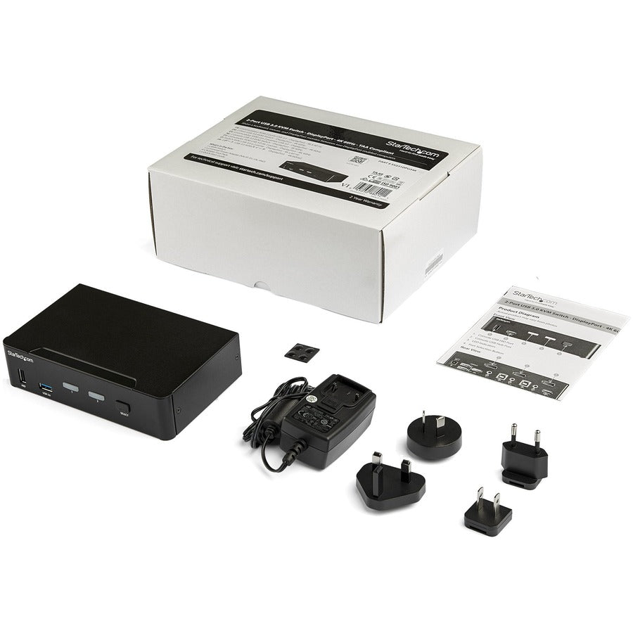 StarTech.com 2 Port DisplayPort KVM Switch - 4K 60Hz - Single Display - UHD DP 1.2 USB KVM Switch with USB 3.0 Hub & Audio - TAA Compliant