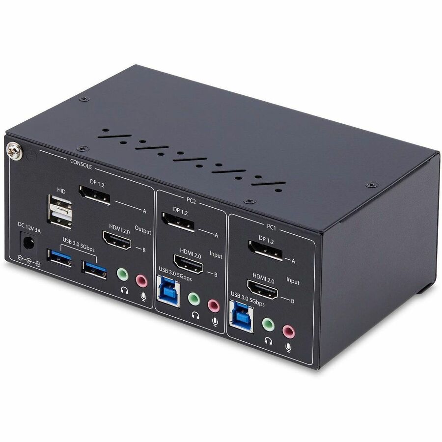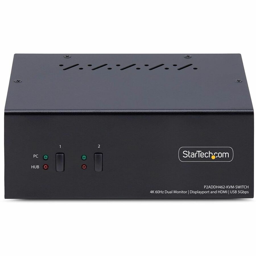 StarTech.com 2-Port Dual-Monitor DisplayPort and HDMI KVM Switch, 4K 60Hz, 2-Port USB 5Gbps Hub, 2x USB HID Ports, Hotkeys, TAA Compliant