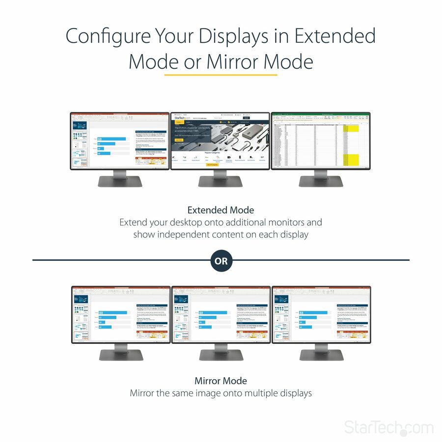 Using the MST hub, you can extend your desktop onto additional monitors and stream independent content to each display. You can also mirror the same image onto multiple HDMI televisions or projectorsfor remote viewing applications such as digital signage.