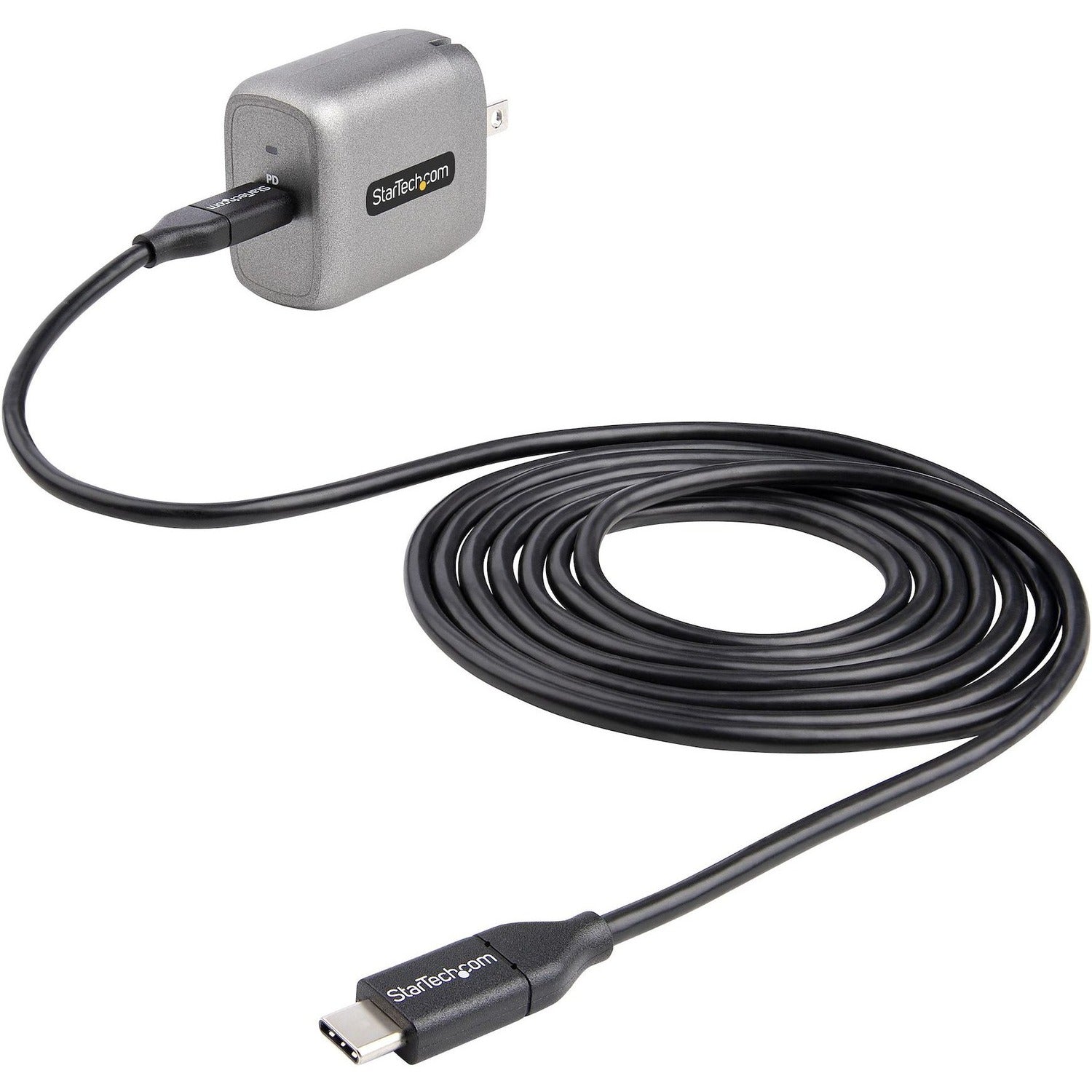 StarTech.com 30W USB-C Wall Charger, Portable GaN Charger w/ USB Power Delivery Fast Charging, USB-IF Certified, 6ft Cable, USB-C Charger