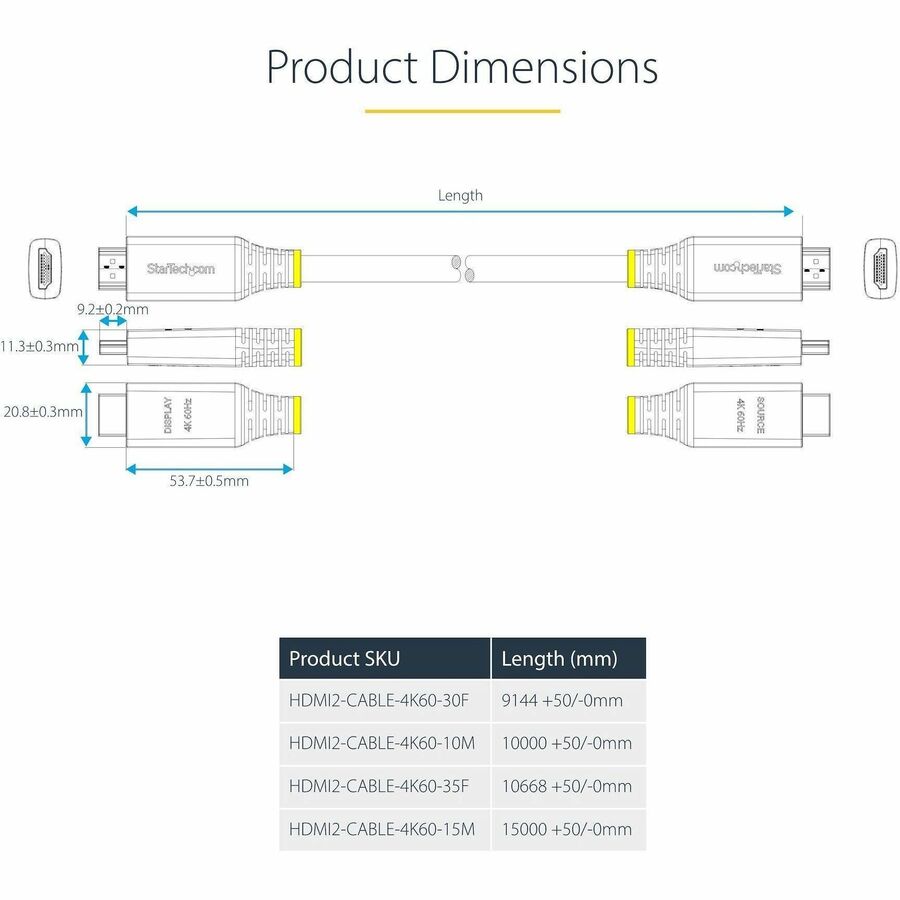 StarTech.com 35ft (10.6m) Active High Speed HDMI Cable, 4K 60Hz/1440p 144Hz, 18Gbps, UHD HDMI 2.0 Cord, TPE Jacket