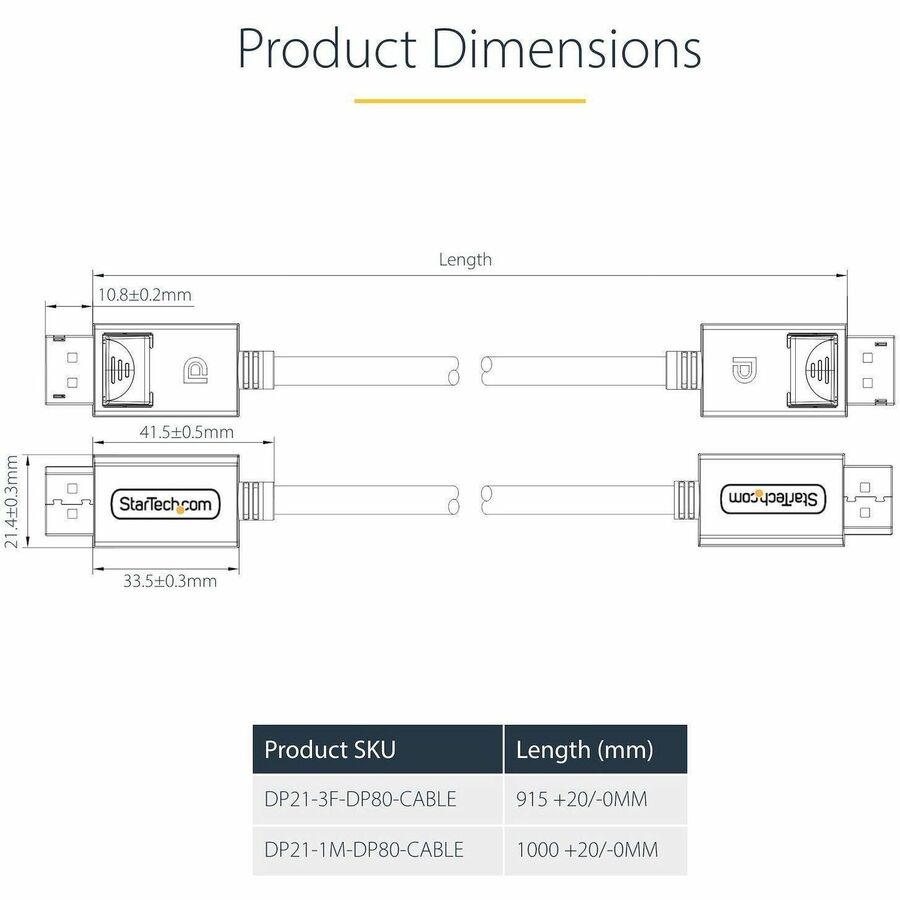 StarTech.com 3ft DisplayPort 2.1 Cable, VESA Certified DP80 DisplayPort Cable w/UHBR20/HDR/DSC 1.2a/HDCP 2.2, 16K/8K 60Hz, DP 2.1 Cord