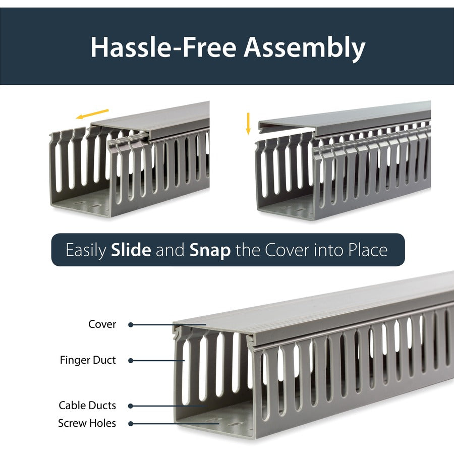 - EASY INSTALLATION: This finger duct raceway can be screwmounted to a wall, floor, ceiling, desk or closet for easy installation; Quickly extend the total length of this protective channel for wire cables by adding extra units