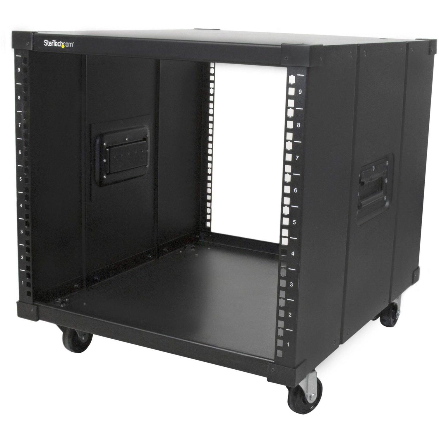StarTech.com 4-Post 9U Mobile Open Frame Server Rack, 19" Network Rolling Rack for Narrow Spaces, Small Data Rack with Casters, TAA