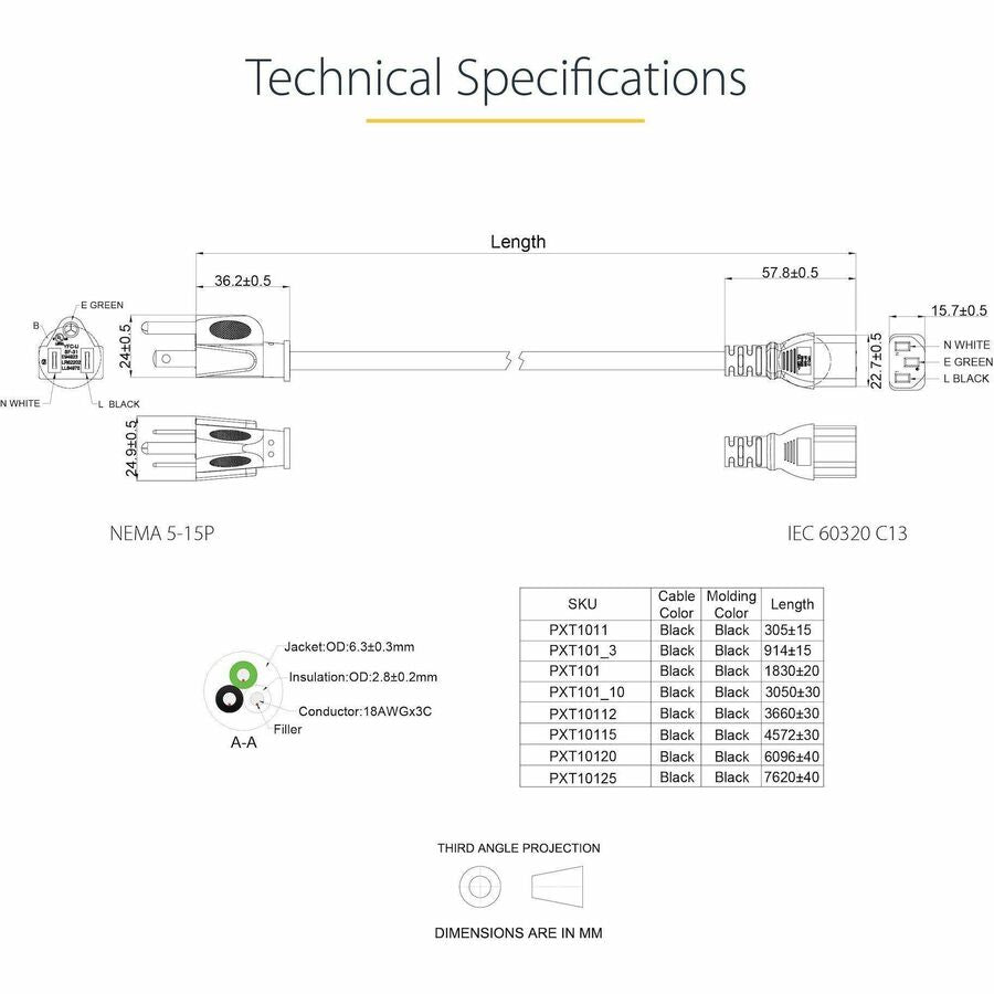 Backed by StarTech.com's lifetime warranty, this high quality NEMA5-15P to C13 computer power cable is constructed to provide a durable, reliable connection.