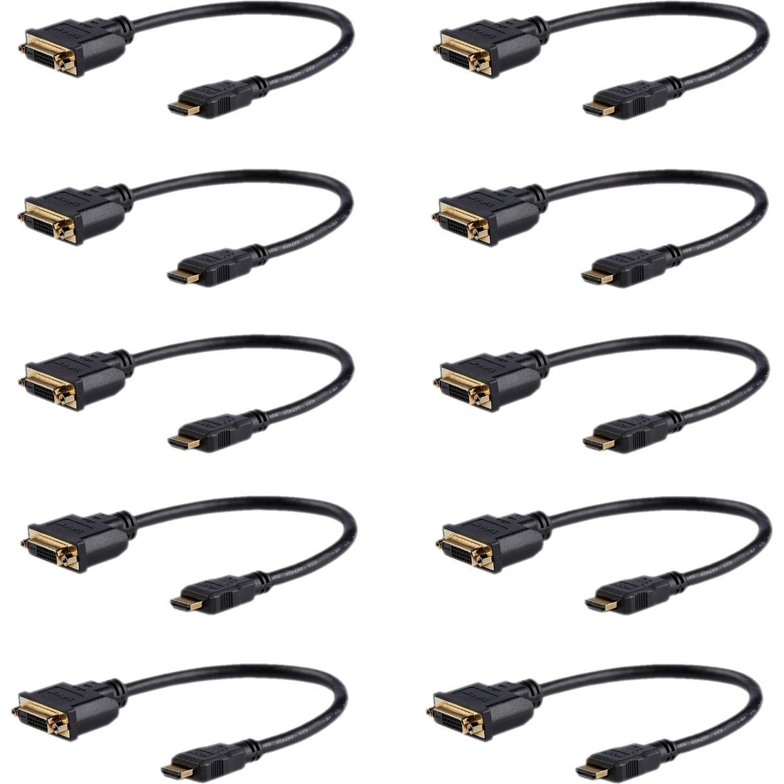 StarTech.com 8in (20cm) HDMI to DVI Adapter, DVI-D to HDMI (1920x1200p), 10 Pack, HDMI Male to DVI-D Female Cable, HDMI to DVI Cord, Black