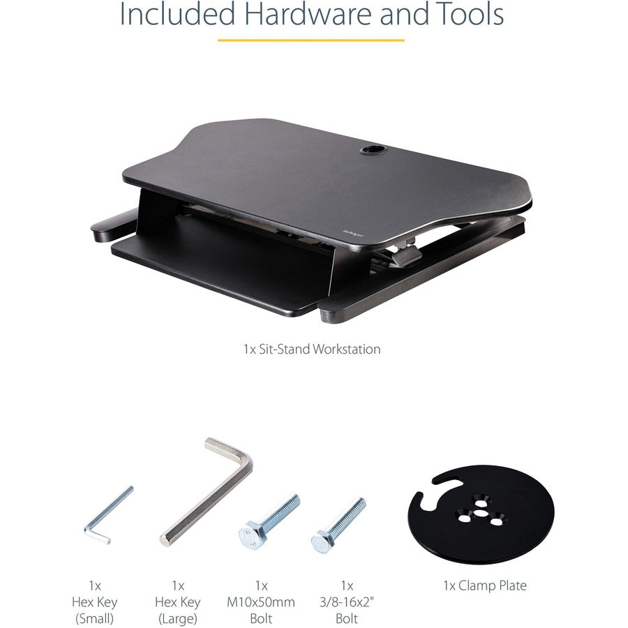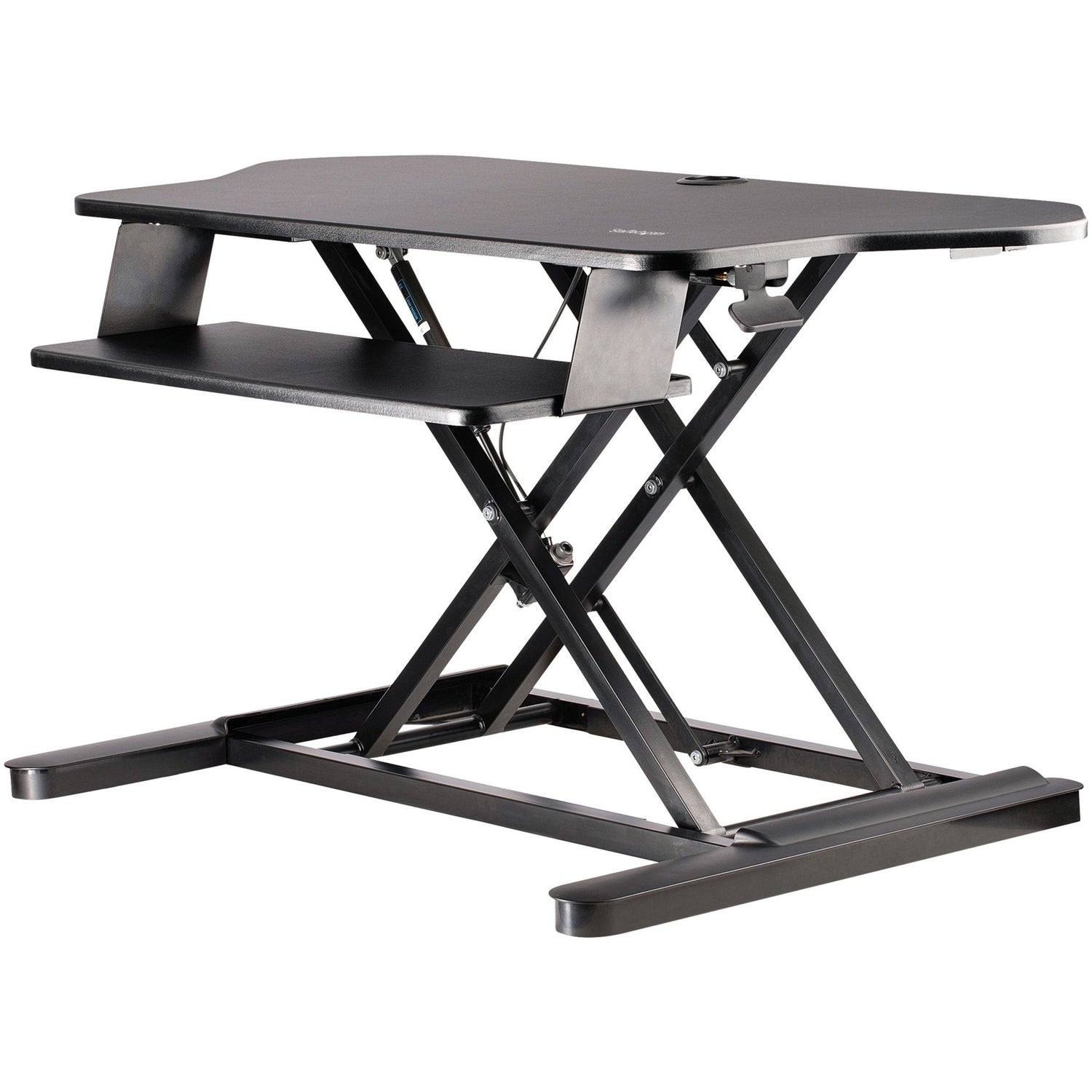 StarTech.com Corner Sit Stand Desk Converter with Keyboard Tray, Large Surface 35"x21" , Height Adjustable Ergonomic Tabletop Standing Desk