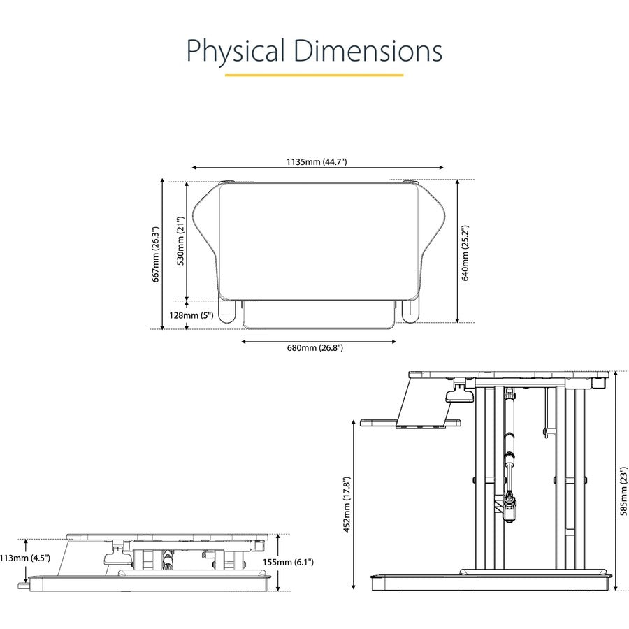 The sit-stand workstation is designed to support your ergonomic needs. With a simple squeeze of a paddle, you can easily switch your position to sitting or standing, to keep a balanced level of movement. The workstation features a pneumatic spring arm that provides effortless movement - you simply raise or lower the platform with one squeeze of the lever. You can adjust the standing desk to match your exact height requirements, with a height adjustment range of 16.9" (430 mm).