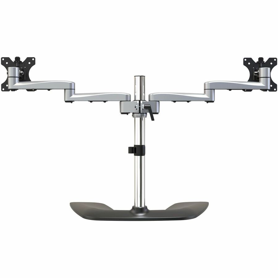 Customize your workstation, and free up space, with this dual-monitor stand. Mount two monitors on the dual articulating monitor arms, and adjust your displays for optimum viewing with a wide range of motion. The free-standing base gives you flexibility in placing your setup within your workspace.