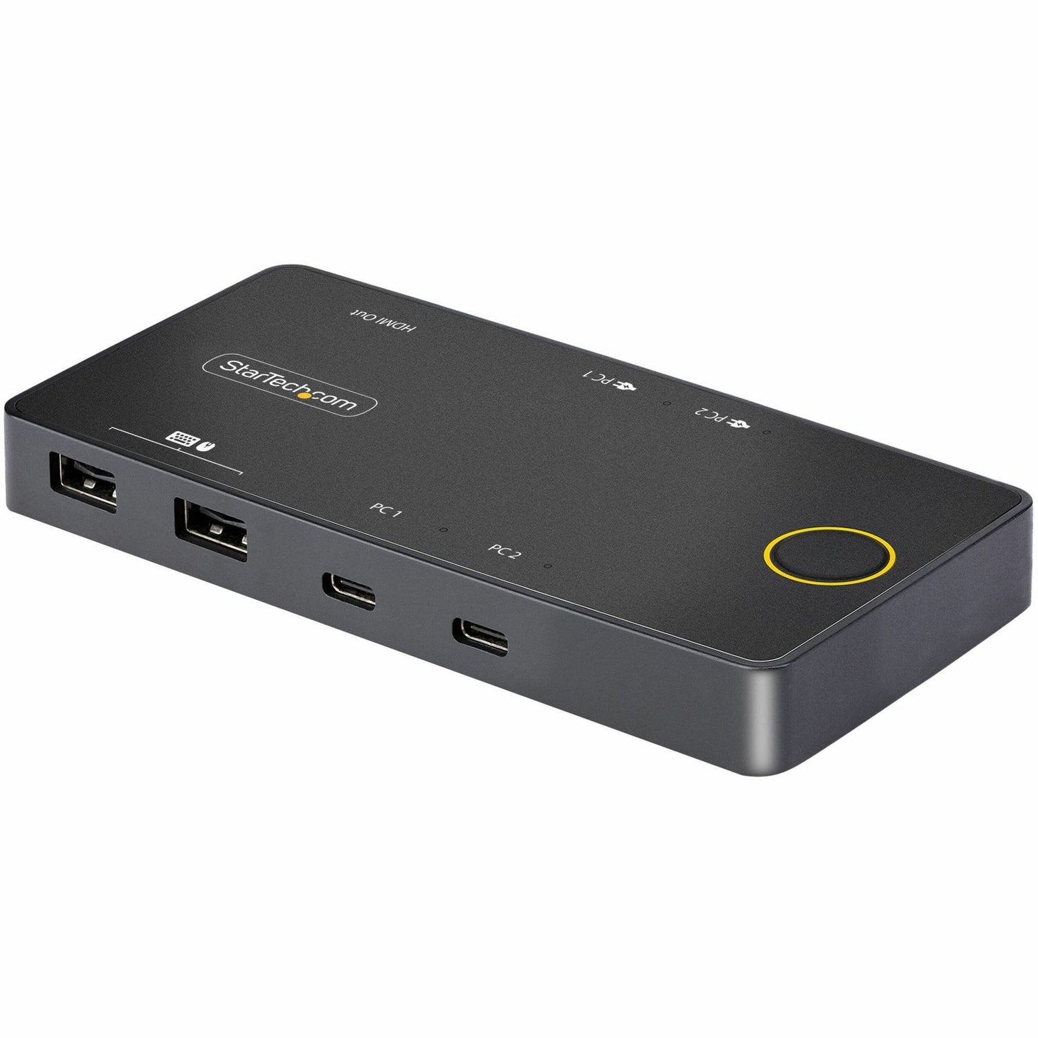 - 4K 60HZ USB-C KVM SWITCH: Enables fast switching of a keyboard, video, and mouse using a single USB-C cable connected to a laptop that supports USB-C DP Alt Mode; It features a 4K 60Hz HDMI output, two USB HID ports, and pushbutton switching