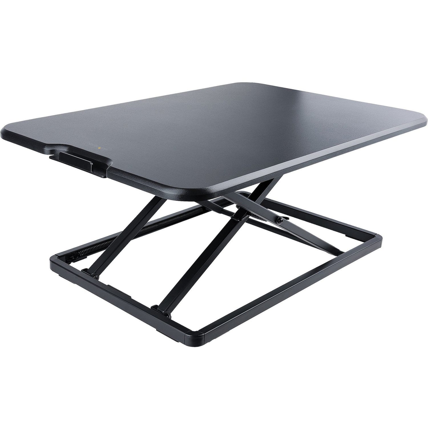 - CONFIGURABLE DESIGN: The height adjustment button can be positioned on either side and the sit stand platform also features a finger guard at the bottom for safe and ergonomic operation; The platform surface has a nice black finish that is easy to clean