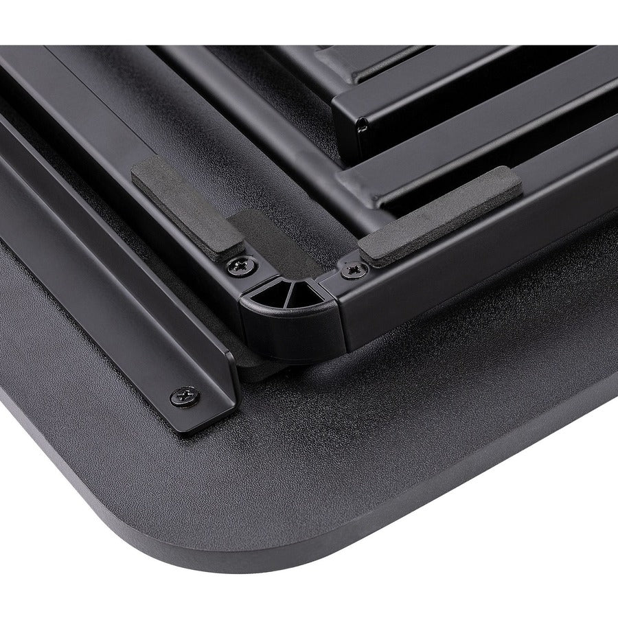 The platform measures 26.4 x 18.5 in (67 x 47 cm) providing a sufficient workspace and weight capacity (Up to 17.6 lb / 8 kg) for a laptop, keyboard, and mouse.