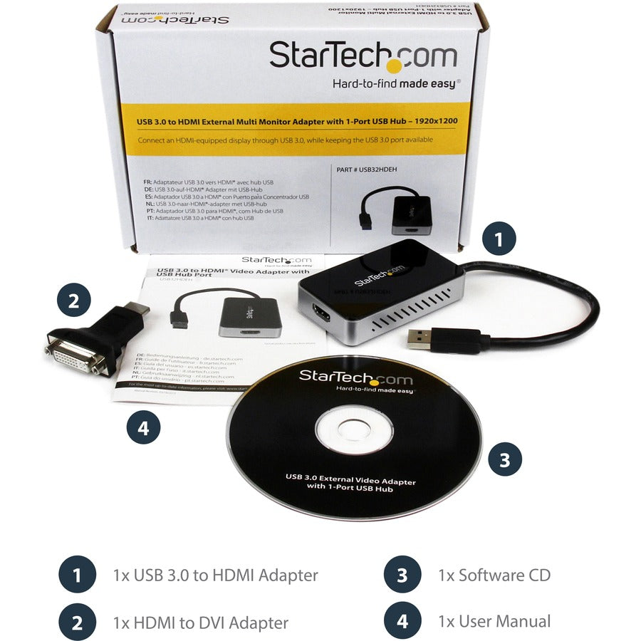 StarTech.com USB 3.0 to HDMI Adapter w/ 1x USB, USB to VGA Monitor Converter for Windows (no support for macOS/ChromeOS/Linux) - TAA