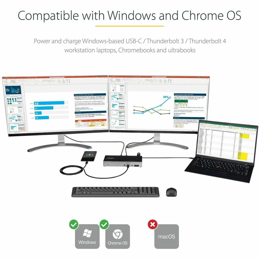 This USB-C Gen 2 10Gbps docking station turns your USB-C ® or Thunderbolt™ 3 Windows laptop or Chromebook into a powerful workstation. A USB 3.2 Gen 2 Type-C dock features everything you need, from triple video outputs up to 4K 60Hz to 10Gbps USB-C & USB-A downstream peripheral ports to 100W Power Delivery.