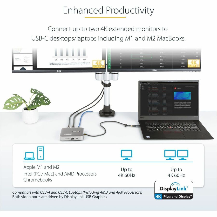 StarTech.com USB C Docking Station, Dual 4K 60Hz HDMI, compatible with MacBook Pro (M1/M2/M3/M4) and Windows, 10Gbps USB Hub, GbE, 100W PD