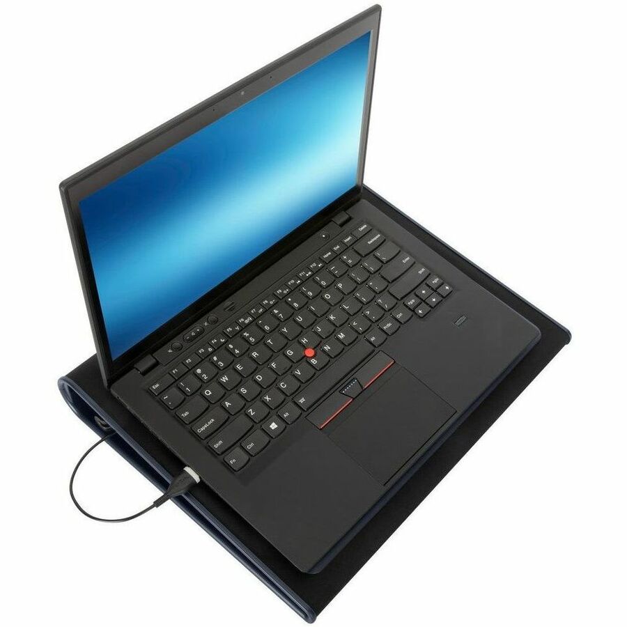 The 17" Dual Fan Chill Mat™ provides a comfortable and ergonomic work surface to keep you and your laptop cool. The chill mat rests on your lap and disperses heat, using dual fans to provide ventilation which can be obstructed if the laptop is used on a pillow or comforter.