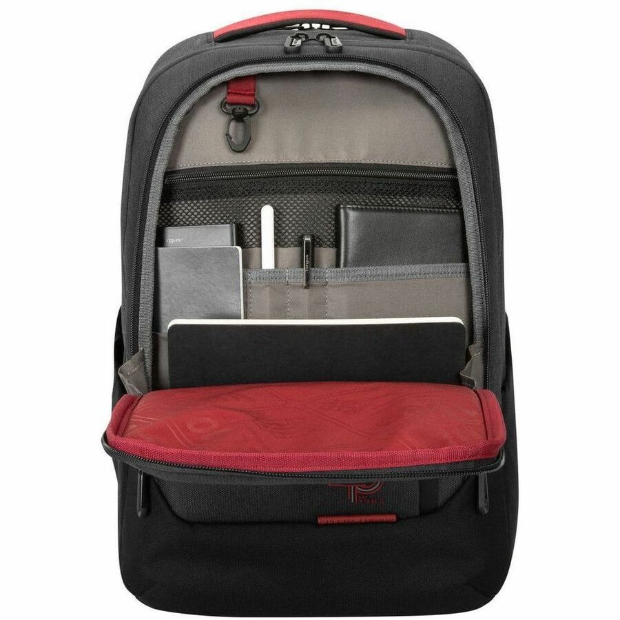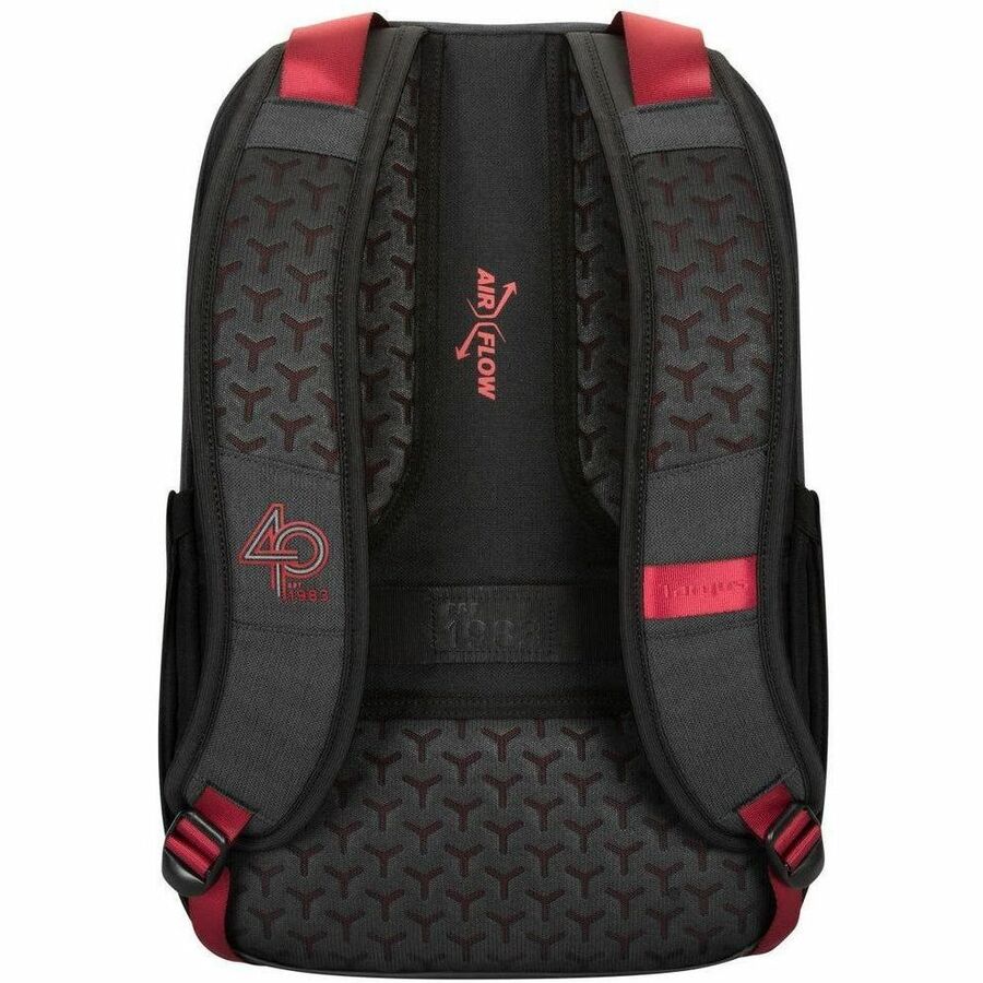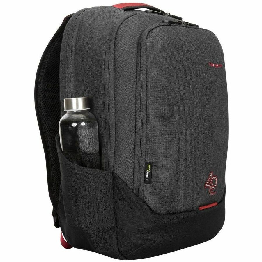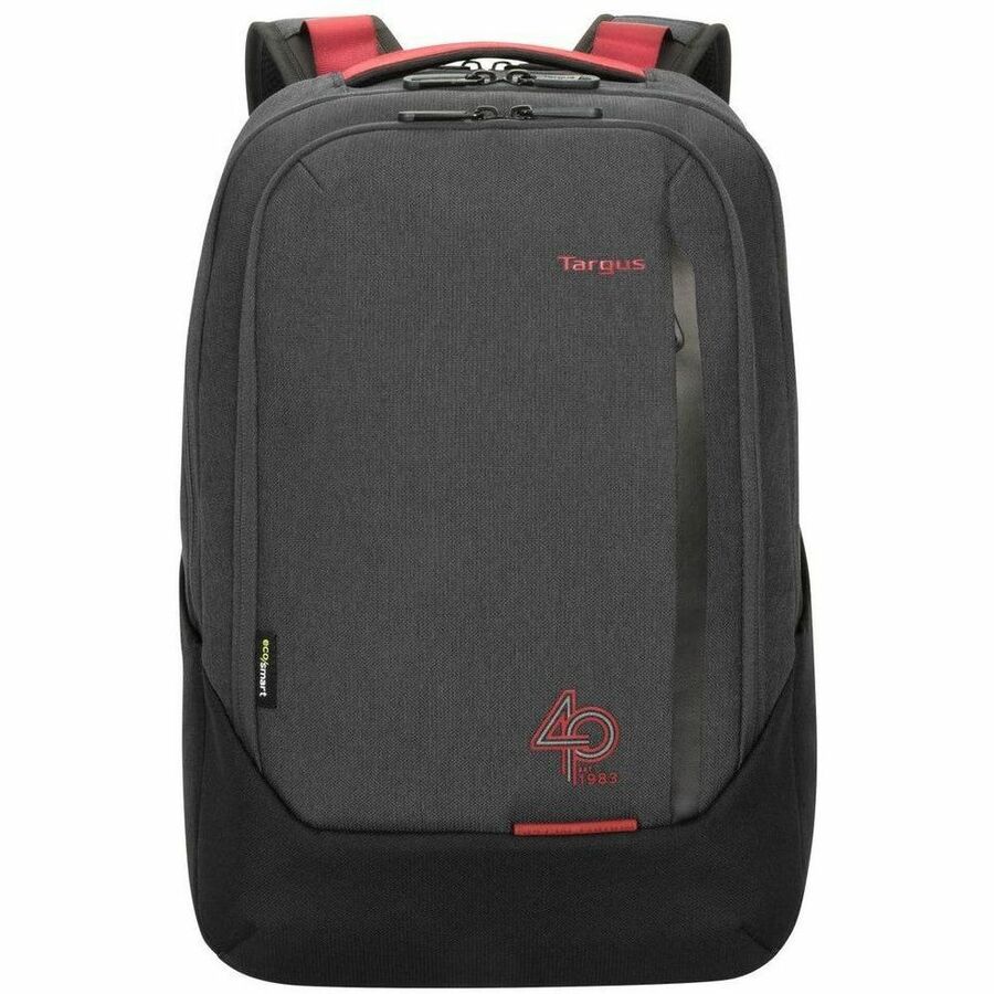 Join us as we celebrate 40 years as a leader in mobile computing accessories. Targus® is proud to introduce its limited edition 15.6" 40th Anniversary Cypress™ Hero EcoSmart® Backpack. This bag boasts a new dark charcoal exterior with ruby red accents and matching interior. It displays special milestone details and an elevated design.
