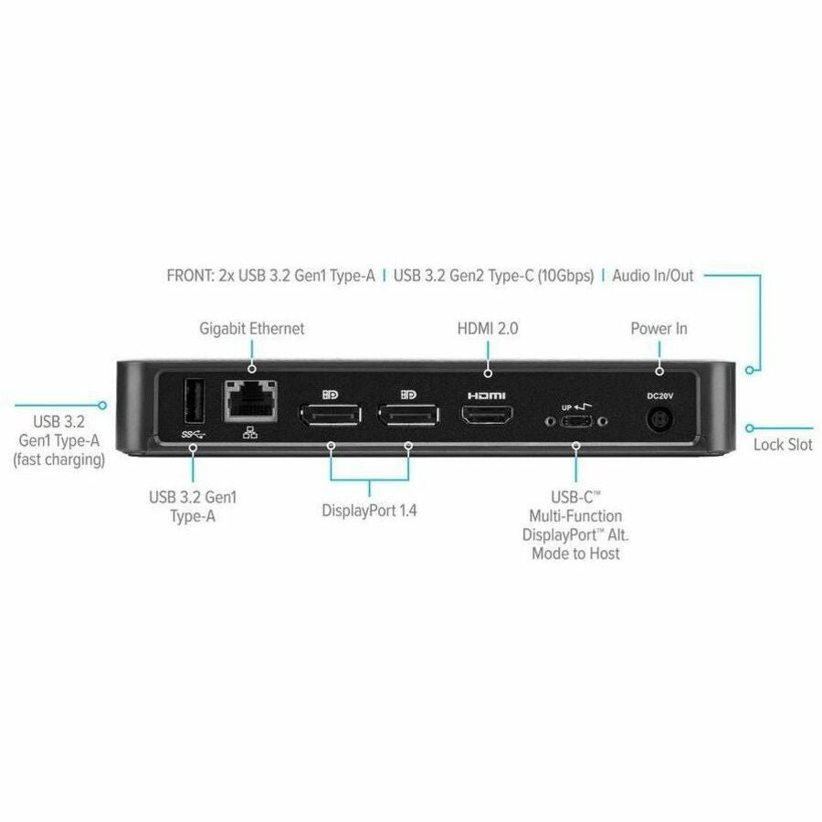 Access the latest display technology with two DisplayPort™ and HDMI ports that creates a rich, high-definition viewing experience. The USB-C™ DisplayPort™ Alt. Mode Docking Station with 85W Power supports full UHD (3840x2160 p60) resolution in single display and resolutions of up to 2560x1440 p60 in dual video mode - and even 1920x1080 p60 with three monitors.