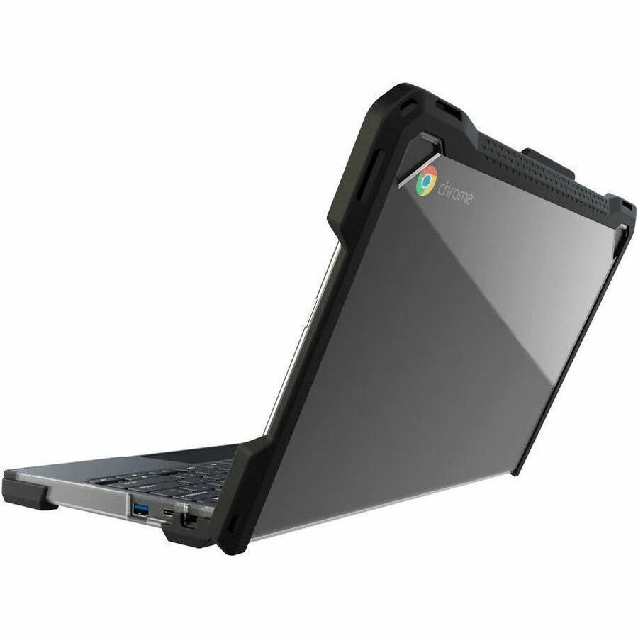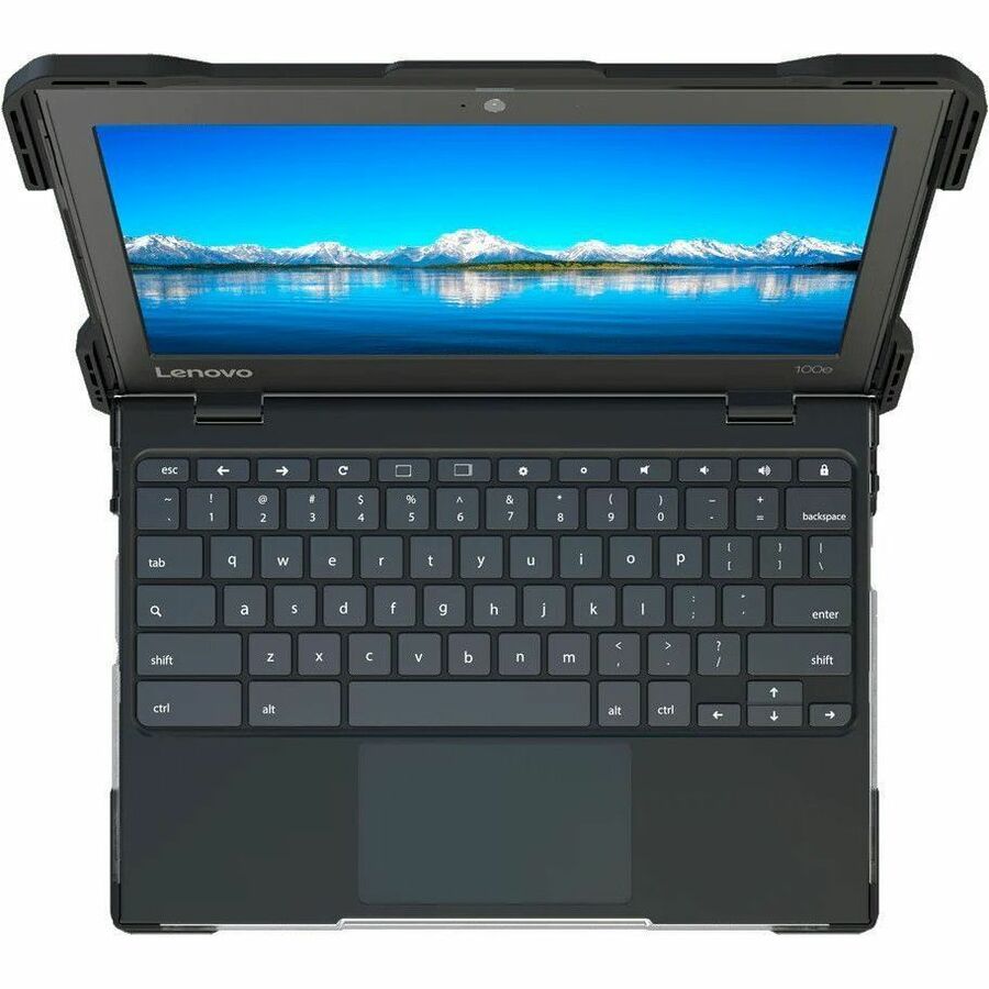 The UZBL Rugged Hard Shell Case for Lenovo 14e/14w Chromebook Gen 1, 14" w/ Stylus Holder Top offers maximum drop protection by utilizing reinforced TPU edges that absorb drops and falls and a clear polycarbonate snap-on shell design to protect from scratches that also allows for convenient asset or barcode scanning.