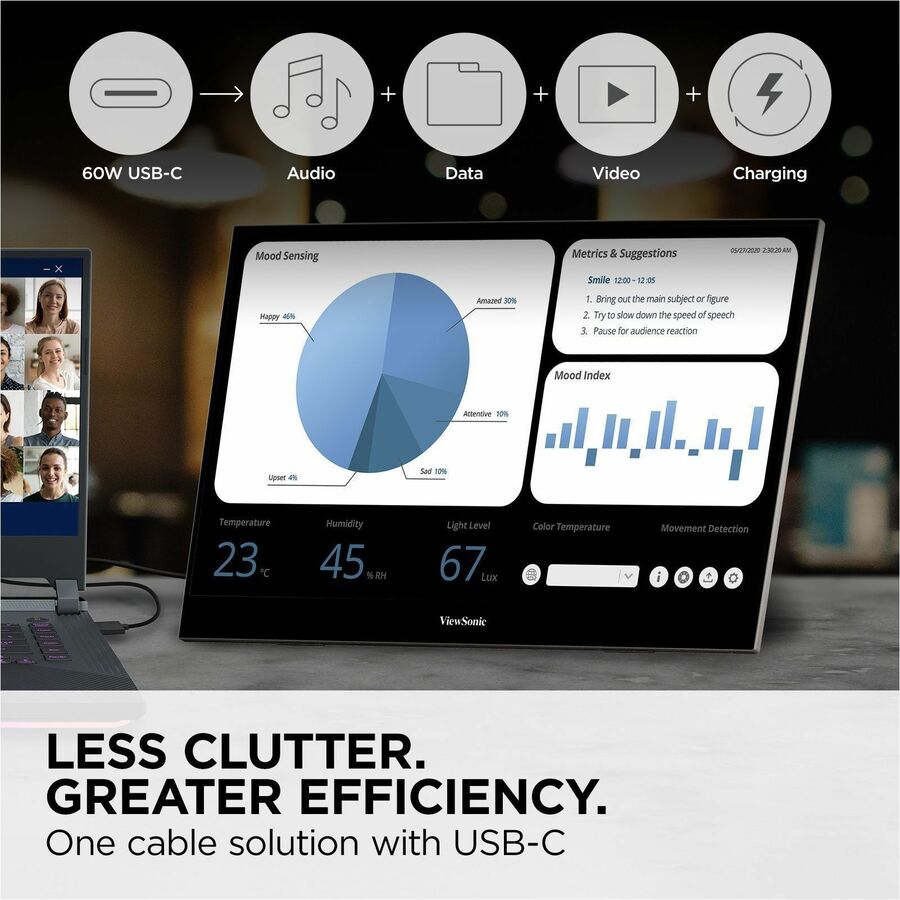 ViewSonic VX1655 15.6 Inch 1080p FHD Portable LED IPS Monitor with 2 Way Powered 60W USB C, Mini HDMI, Dual Speakers, and Built-in Stand with Tripod Mount